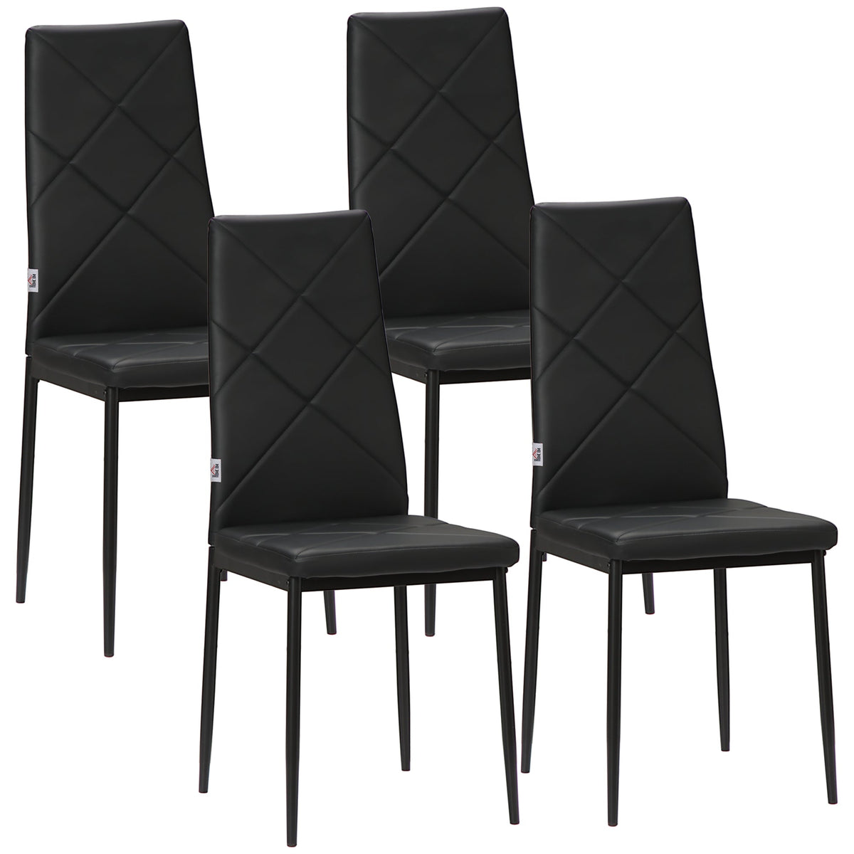 HOMCOM Set of 4 Faux Leather Dining Chairs - Black