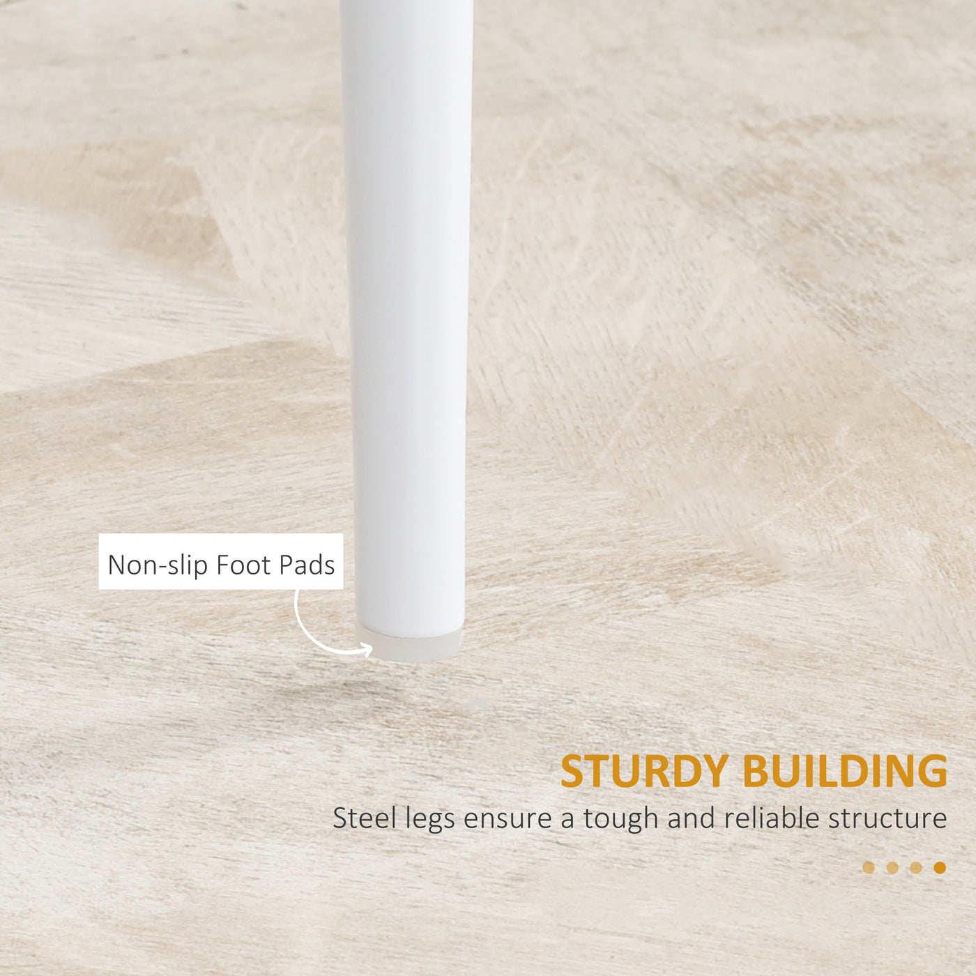 Update your dining room in matching style, with this set of four HOMCOM chairs. With the padded seat for comfort, the high backs keep you supported. These faux leather dining chairs have powder coated steel legs for strong support, for as long as you dine.