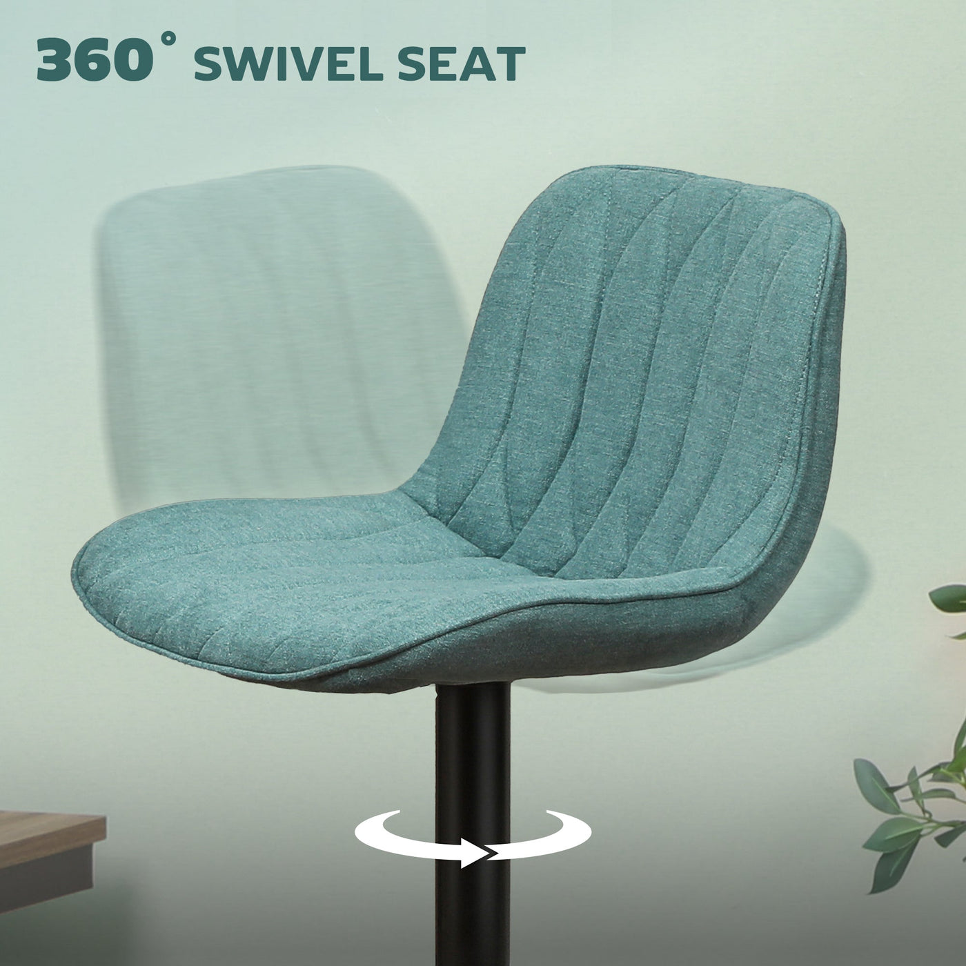 For every raised surface, these two HOMCOM bar stools are the ideal fit. Adjust the seat height between 60-80 cm, to match kitchen islands, countertops and other. The powder coated steel frame ensures a strong core; the 360° swivel motion moves with your body. The padded seats keep you comfortable all day long, finished with supportive high back and smooth linen-look upholstery.