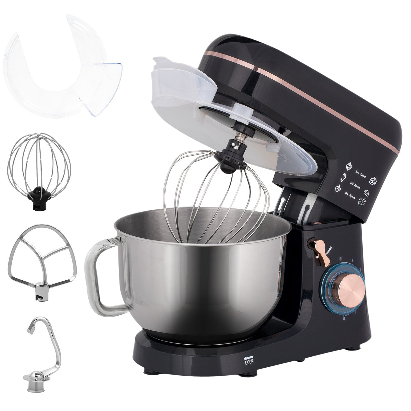 HOMCOM Stand Mixer, 5L Food Mixer for Baking, 6 Speeds and Pulse Setting, 1400W Cake Electric Kitchen Mixer with Dough Hook, Whisk, Stainless Steel Bowl, Splash Guard, Beater, Black - Black