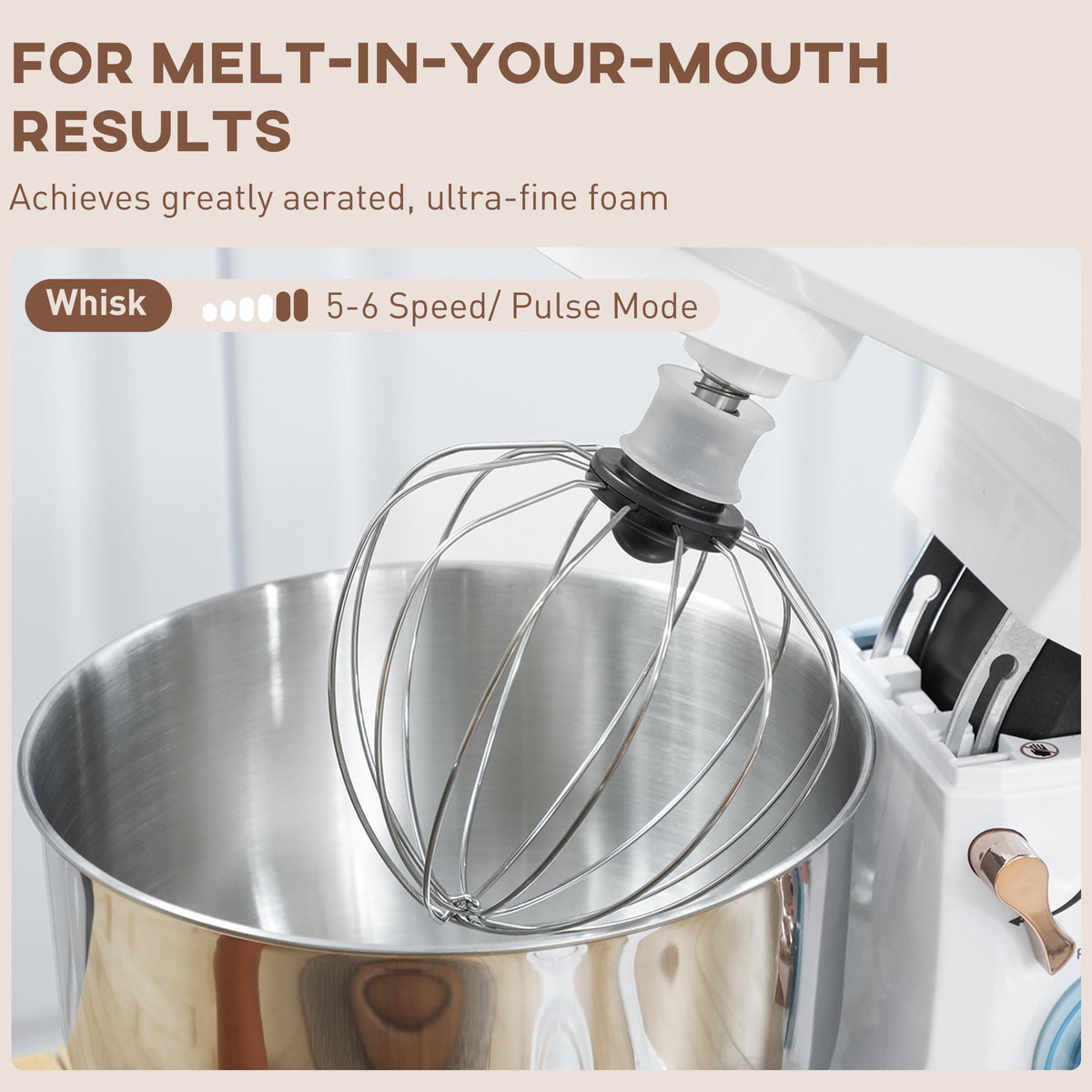 HOMCOM Stand Mixer, 5L Food Mixer for Baking, 6 Speeds and Pulse Setting, 1400W Cake Electric Kitchen Mixer with Dough Hook, Whisk, Stainless Steel Bowl, Splash Guard, Beater, White - White