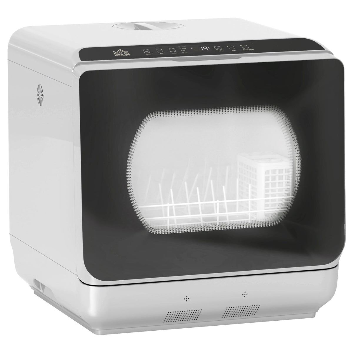 Say goodbye to the hassle of manual dishwashing, anywhere, with this HOMCOM tabletop dishwasher! It features six programs: intensive, efficient, normal, rapid, fruit wash and drying. The efficient spray arm ensures sparkling clean dishes every time. A compact dishwasher, suitable for four-person households.