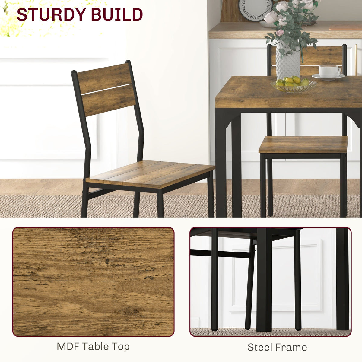 HOMCOM Three-Piece Minimal and Compact Dining Set, Rustic Brown - Rustic Brown