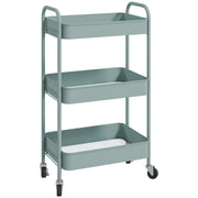 HOMCOM Three-Tier Steel Storage Trolley - Light Blue