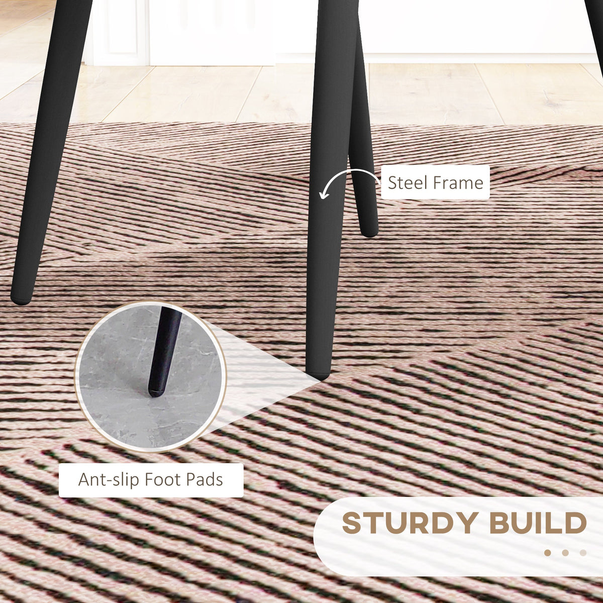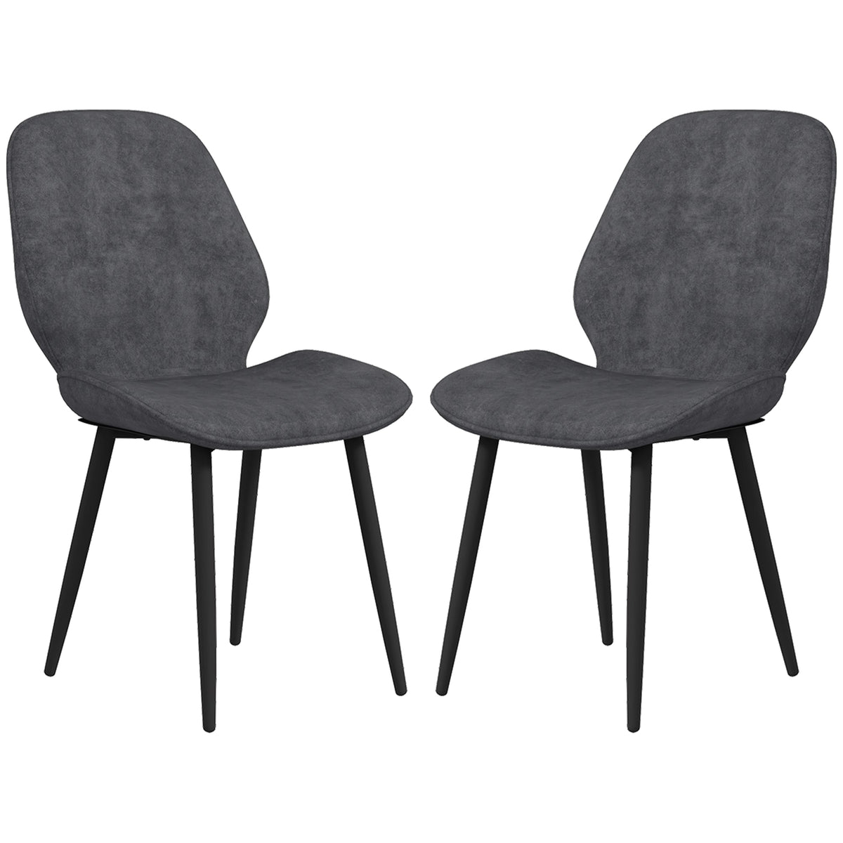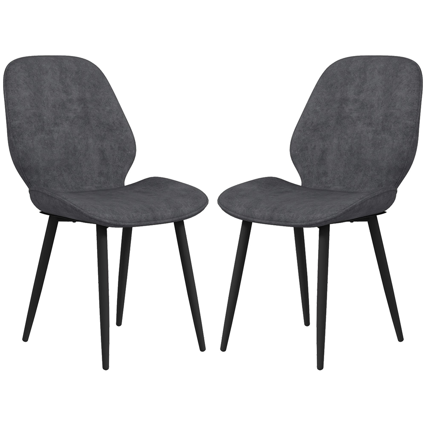 Relaxed style - two times. These set of two HOMCOM dining chairs bring effortless matching style into your home. Armless design and slanted back make it a pleasure to sit on. The foam padding for comfort, with velvet-feel upholstery soft on the skin. Powder coated steel legs for strong support, complete with handy anti-slip feet.