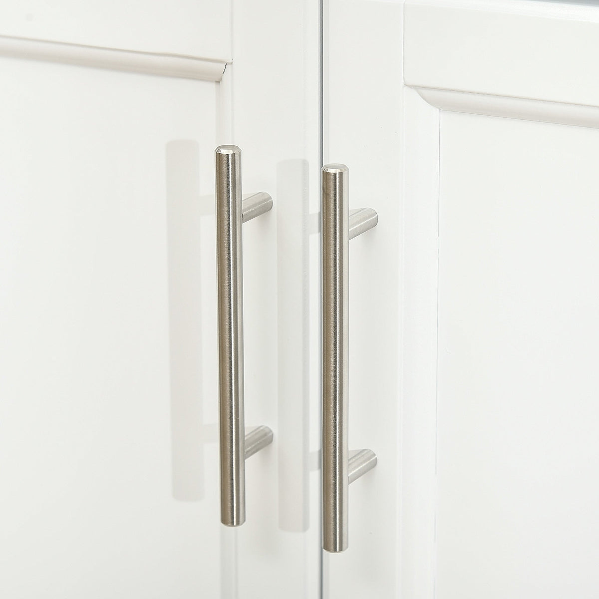 HOMCOM Wooden Kitchen Island on Wheels, Serving Cart Storage Trolley with Stainless Steel Top, Drawer, Side Handle and Rack, White - White