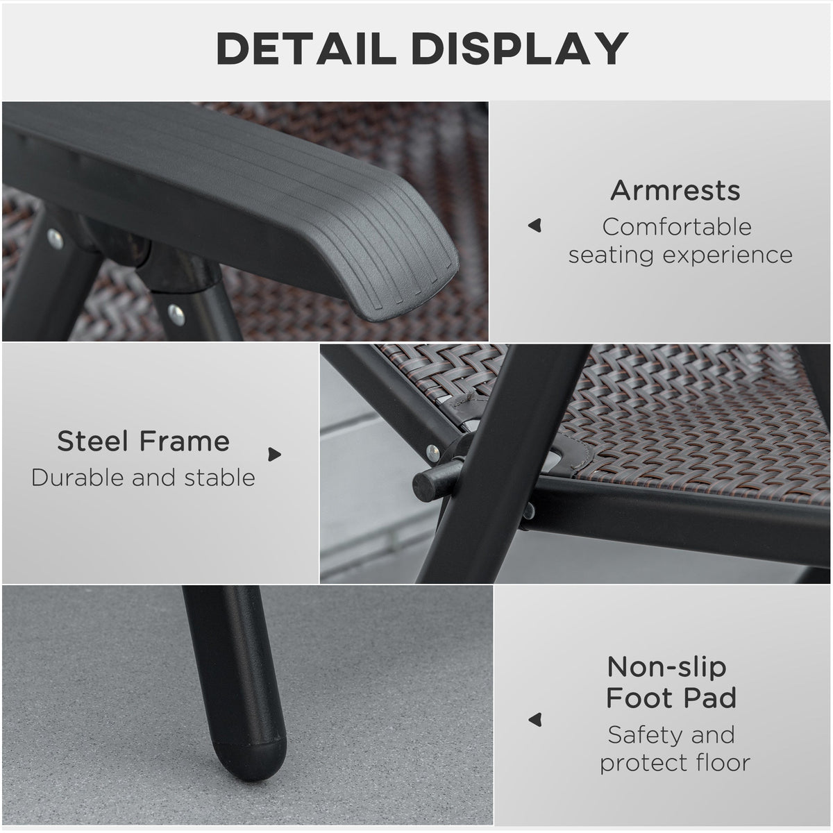 Outsunny Set of Two Folding Garden Chairs, with Seven-Position Adjustable Backs - Brown - Brown
