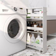 This versatile 4-tier cart provides reasonable storage partition for organizing various items. Whether you need to store kitchen supplies, office supplies, crafts, or other items, this cart is up to the task. Its compact and space-saving design helps maximize storage in any area, keeping your space neat and clutter-free. There are more user-friendly features, such as 4 smooth rolling casters and practical handle. Together with thickened board, the rolling storage cart is a reliable addition to your living space. Upgrade your kitchen storage and functionality with our rolling storage cart, and enjoy a clean, and organized room. Sliding Out Slim Storage Cart: Looking for a space saver? With the dimension of 47 x 13 x 80 cm (L x W x H), this slim storage cart fits effortlessly into narrow gaps, optimizing storage opportunities in compact areas. Sorted Storage Space: The 4-tier utility cart provides ample storage capacity, allowing you to neatly store and categorize items including small seasoning jar, condiments and various drink bottles. More, the protective bars on each shelf are effective to prevent items from falling. Easy Movement and Lockable Design: Equipped with 4 smooth rolling casters, 2 of which are lockable, the kitchen cart is easy to move anywhere and keeps stability in place. The side metal bar plays dual role as a portable handle to facilitate moving and as a handy towel rack. Built for Strength: Constructed with durable material, this rolling storage cart is built for lasting strength and boasts rugged structure. In addition, solid connection and exquisite craftsmanship will withstand years use. Practical and Versatile Use: Such a practical and stylish storage cart wisely combines form and function. The utility cart can be used as a storage organizer or mobile serving cart in the kitchen, laundry, or living room.