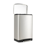 The 3-tier stainless steel frame makes the trash bin fingerprint-proof, rustproof and anti-deformation. More, it also features a hand-free design, with a stainless steel pedal that effortlessly opens the lid with a gentle tap of your foot. No need to touch anything with your hands! And speaking of the lid, it closes softly and silently, eliminating any jarring noises. With its large opening range and stay open function, you have ample time to dispose of multiple items without any hassle. The removable bucket, equipped with convenient handles, makes cleanup a breeze. With a generous 5L capacity, you won’t have to empty it as frequently. Plus, the trash can is equipped with a back handle for easy transportation and anti-slip foot pads to protect your floors from scratches. Anti-Fingerprint Construction: The trash can features a 3-tiered frame that includes a stainless steel layer to enhance strength an durability. Besides, its outer layer ensures perfect resistance to fingerprints, water and rust, making it easy to maintain. Hand-Free and Soft Closing Design: Simply step on the stainless steel pedal to open the trash bin and enjoy a hand-free disposal of trash. Plus, its lid can gently close with a smooth motion, eliminating any slamming or banging noises. Large Opening Range and Stay Open: The garbage bin boasts a stay open function. This means once it is opened, you can lock the lid to maintain an 90° opening range. Thus, you will get enough time when you need to dispose of various items in succession. Removable Bucket and Easy Cleanup: With a generous capacity of 50L, the trash can can hold a large amount of garbage, reducing the need for frequent emptying. In addition, its inner bucket is removable and features handles, making cleanup easier. User-Friendly Details for Wide Use: With the back handle, you can effortlessly move the trash bin to your kitchen, living room, office, and more. It also features anti-slip foot pads that will protect the floor from being scratched.
