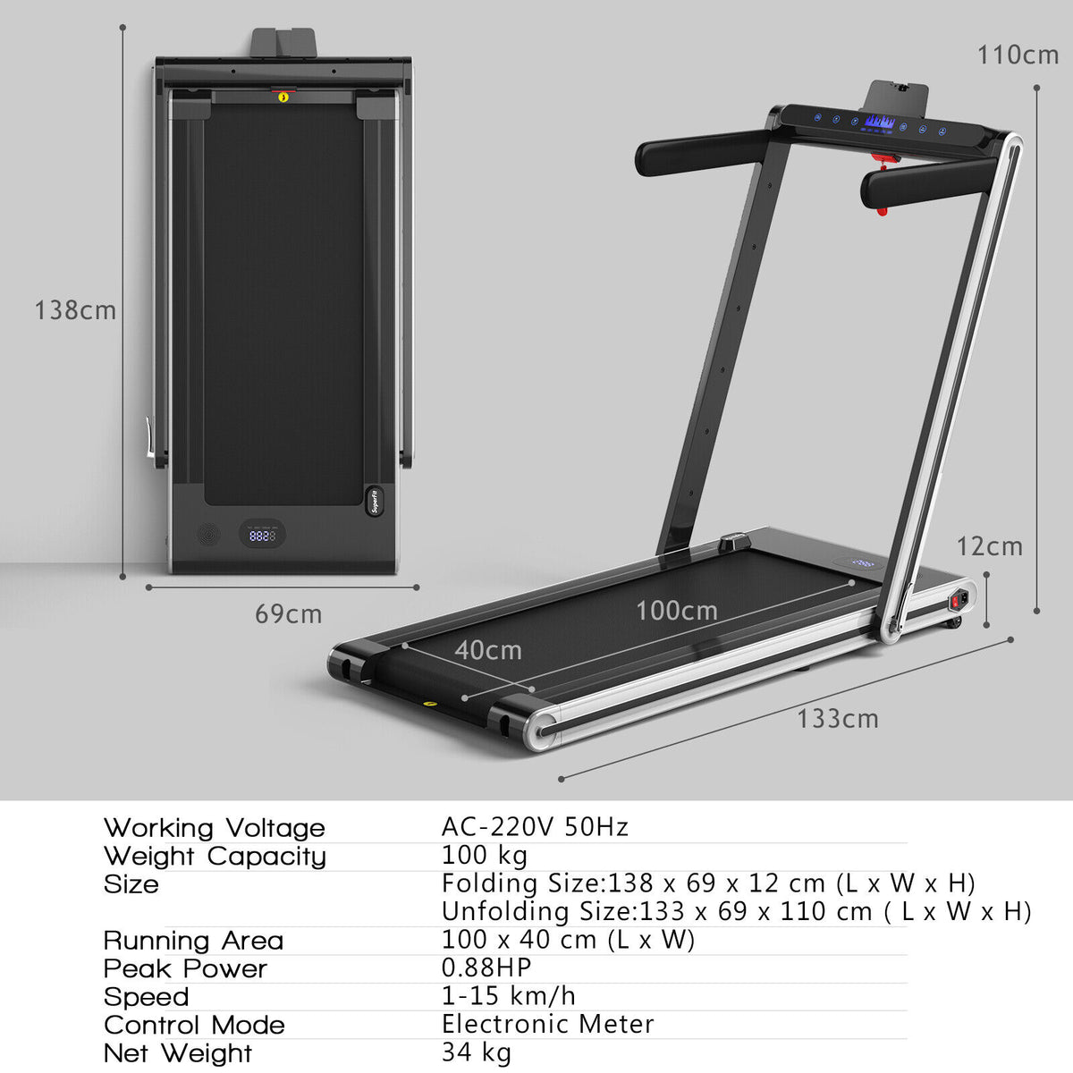 This electric treadmill with remote control provides 2 modes for your selection. One is walking motion (1-15 km/h) and another...