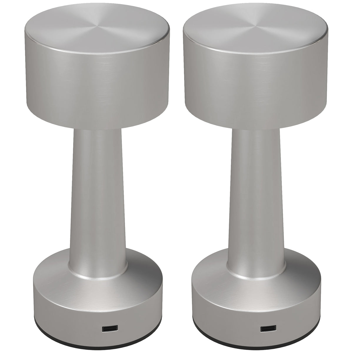 2 Pack Cordless Table Lamp, Touch LED Desk Lamp with Rechargeable Battery, 3 Colour, for Bedroom Living Room, Silver - Silver