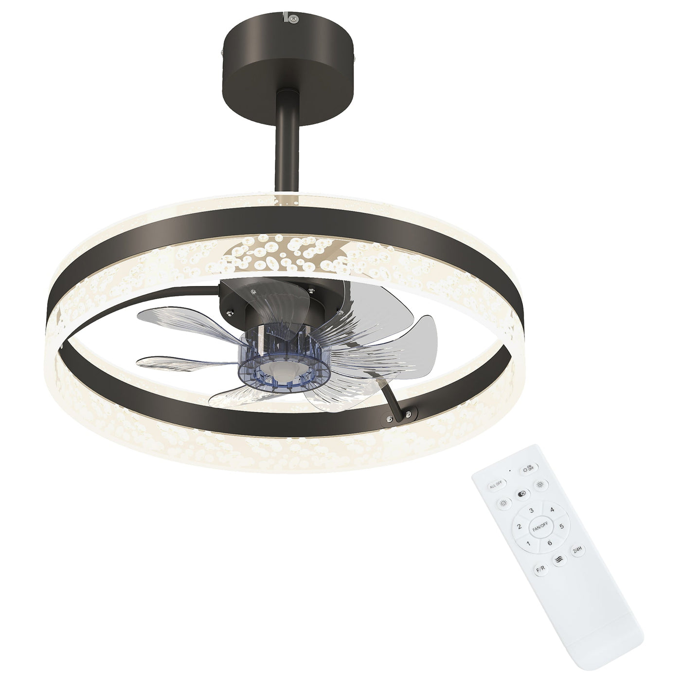 - Remote control included for ease. Separate controls for fan and light increase usability