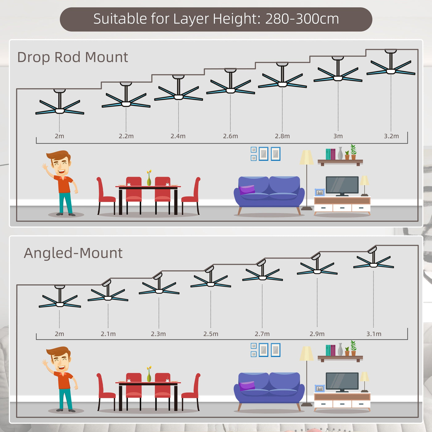 Bring a touch of charm into your home with this ceiling fan from HOMCOM. The bright light lets you use less energy and have plenty of brightness to study, work, read or write. Add that last missing piece into your bedroom, office, or living room with this ceiling fan with LED light from HOMCOM.