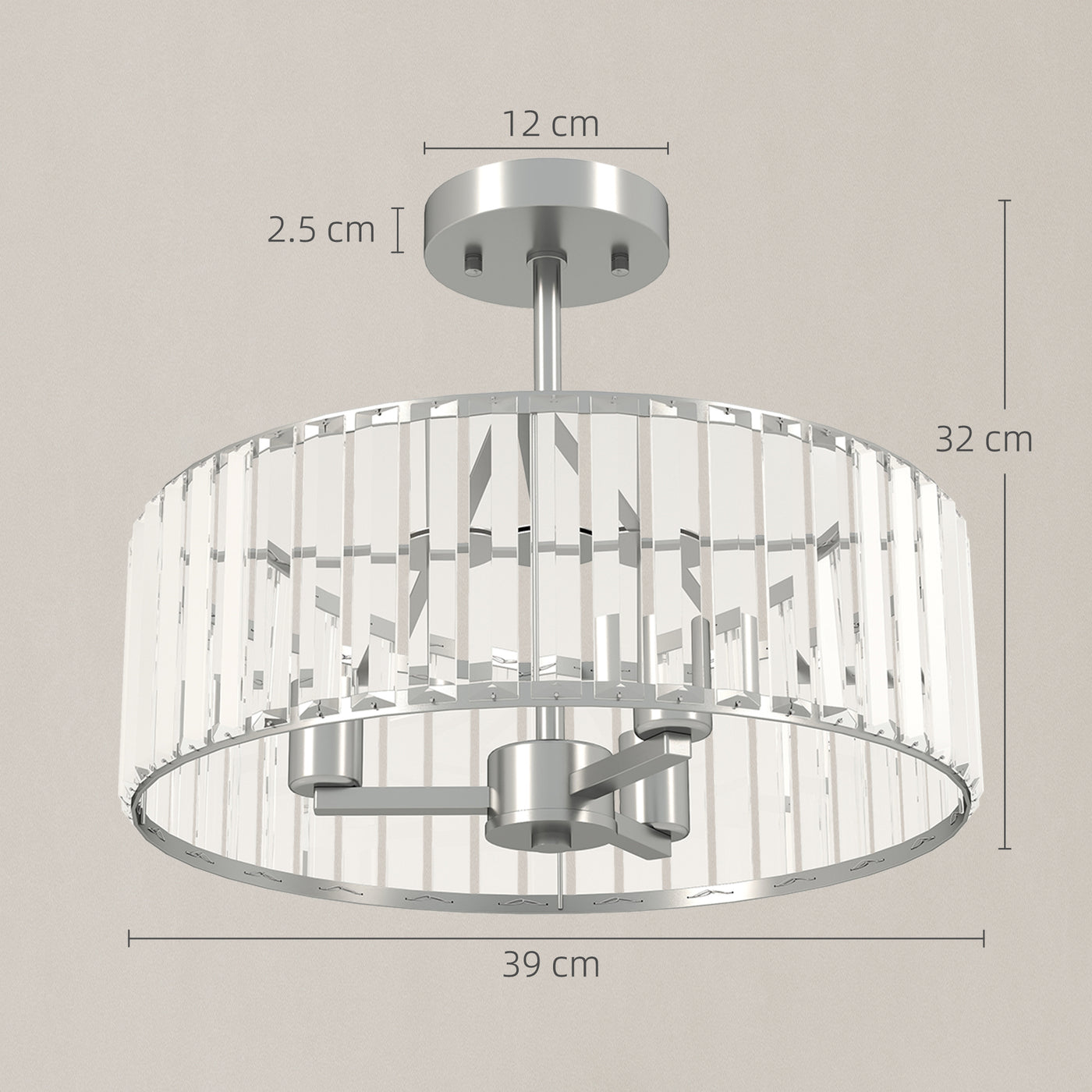HOMCOM Crystal Ceiling Light Fixture, Semi Flush Mount Modern Crystal Chandelier Ceiling Light for Living Room, Bedroom, Hallway, Dining Room, E14 Base 3-Lights, Silver Tone - Silver Tone