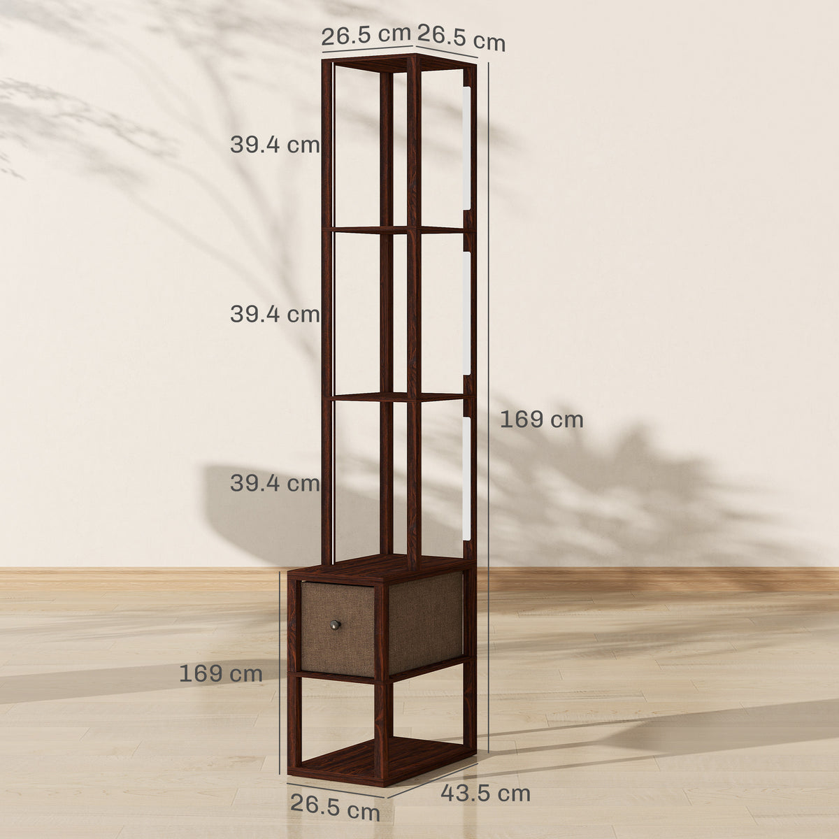 HOMCOM Floor Lamp with Shelves, LED Column Modern Standing Lamp with Fabric Drawer, Adjustable Brightness, Foot Switch for Living Room, Bedroom, Office, Dark Brown - Dark brown