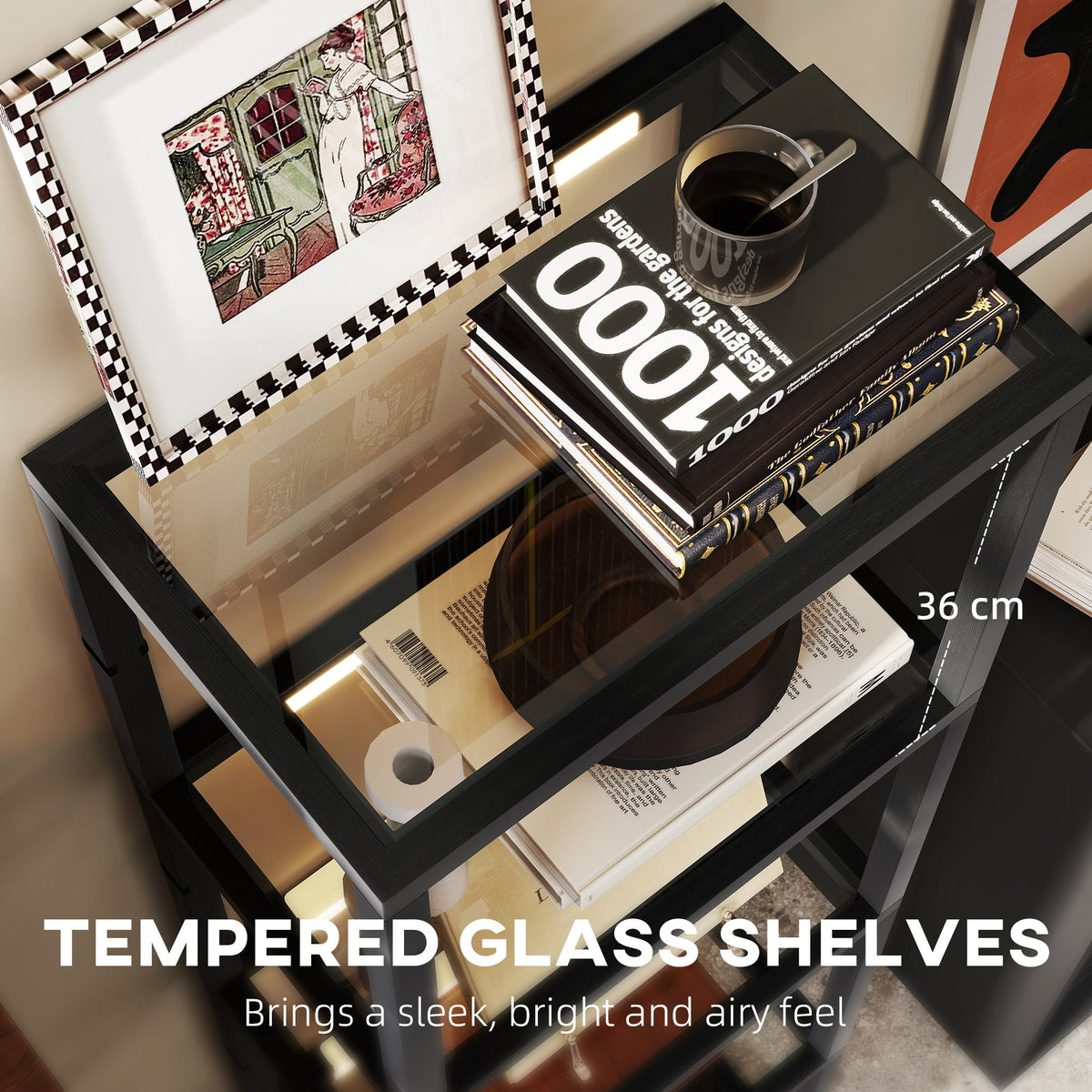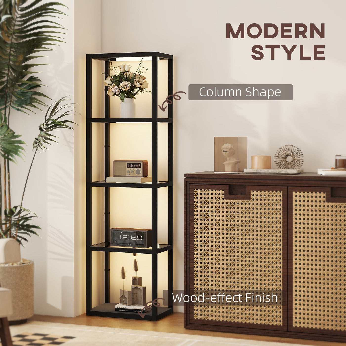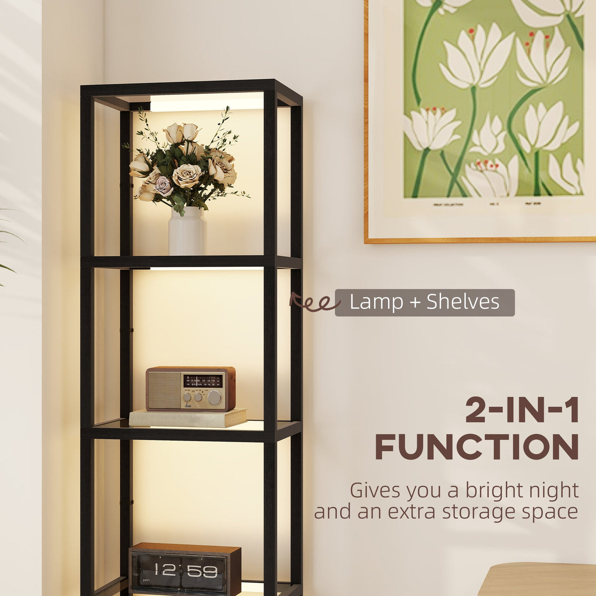 HOMCOM LED Floor Lamp with Glass Shelves, 4 Layers Dimmable Tall Standing Lamp, Modern Column Shelf Floor Light for Living Room, Bedroom, Office, Black - Black