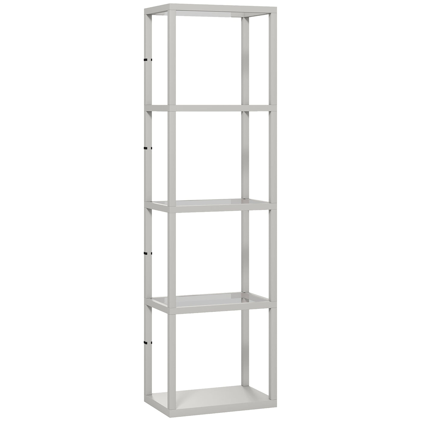 HOMCOM LED Floor Lamp with Glass Shelves, 4 Layers Dimmable Tall Standing Lamp, Modern Column Shelf Floor Light for Living Room, Bedroom, Office, Grey - Grey