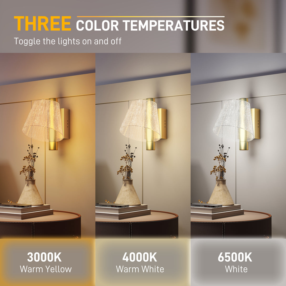HOMCOM Led Wall Lamp 2 Pack, 5W Modern Indoor Starry Wall Light, Colour Temperature Adjustable 3000K/4000K/6500K, for Bedroom, Living Room, Hallway, Stairs, Gold Tone - Gold Tone