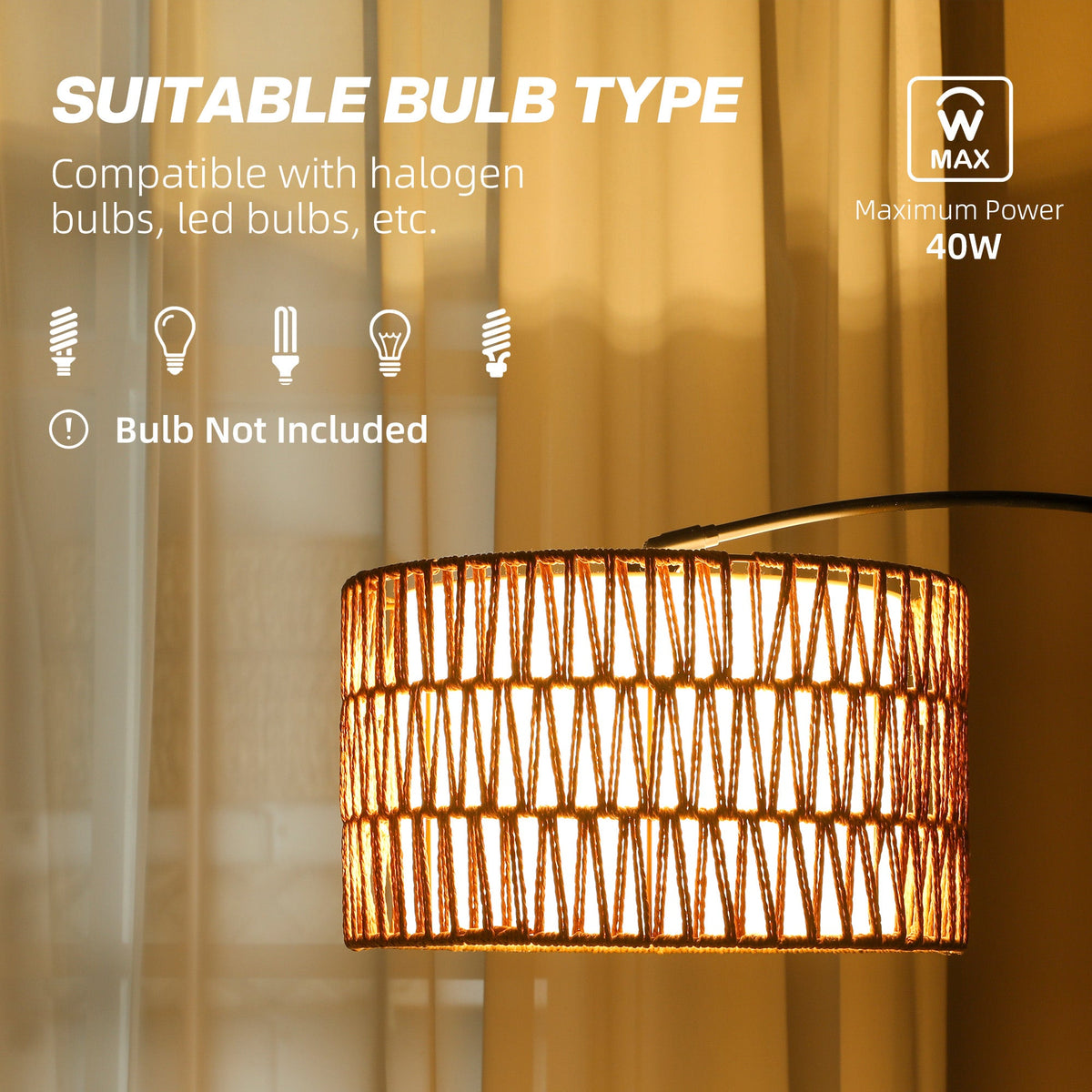 Discover the charm of the HOMCOM LED lamp, where classic meets contemporary. Its dual-layer lampshade, crafted from hemp rope and sleek black metal, sets a cosy, ambient lighting mood in any space. Effortlessly adjust the height to your liking and turn it on with a simple tap of the foot switch. A stylish addition to your living room as a standing lamp or a chic tall lamp in the corner.