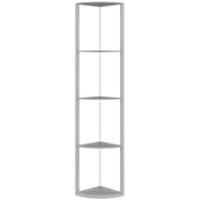 HOMCOM RGB LED Floor Lamp with Shelves, 5-Tier Dimmable Standing Lamp with Adjustable Brightness and Remote Control, Modern Corner Display Shelf Unit for Living Room Bedroom Office, Grey - Grey