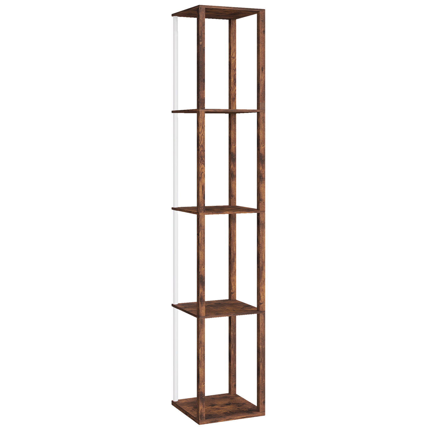 HOMCOM RGB LED Floor Lamp with Shelves, Modern Dimmable Standing Lamp with Remote Control, Adjustable Brightness & Speed for Living Room, Bedroom, Office, Rustic Brown - Rustic Brown
