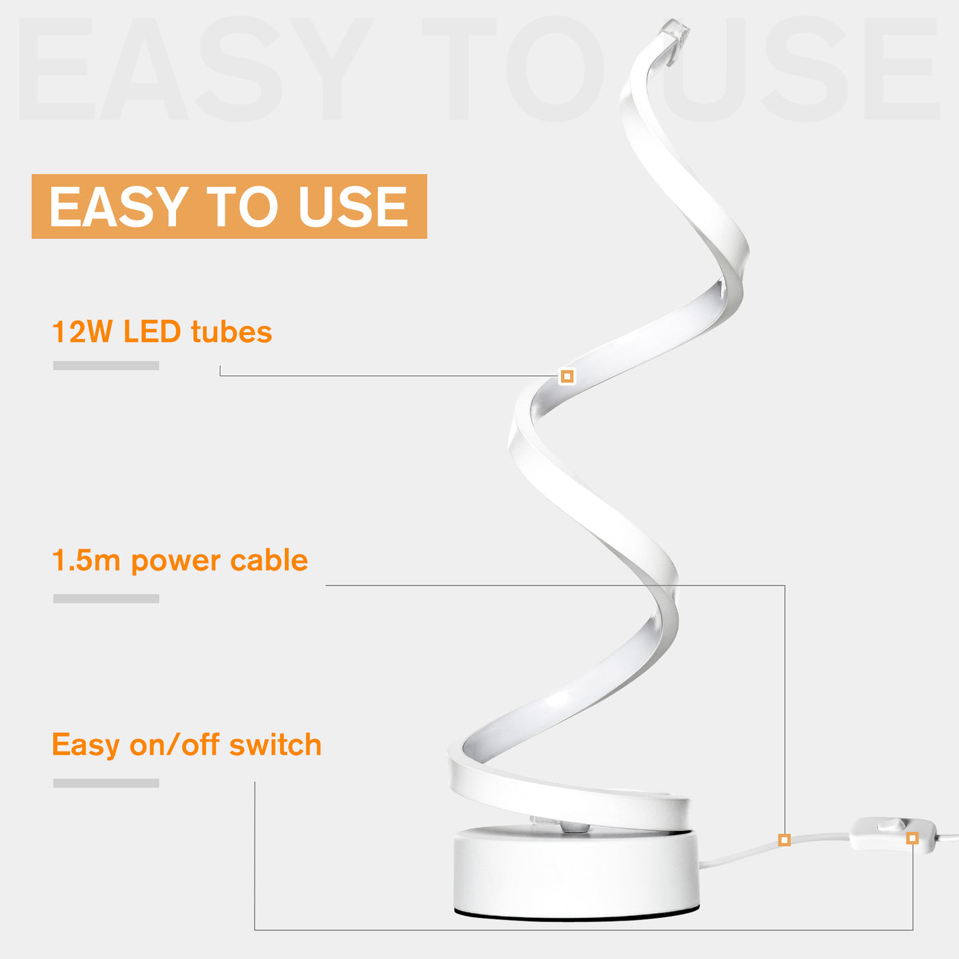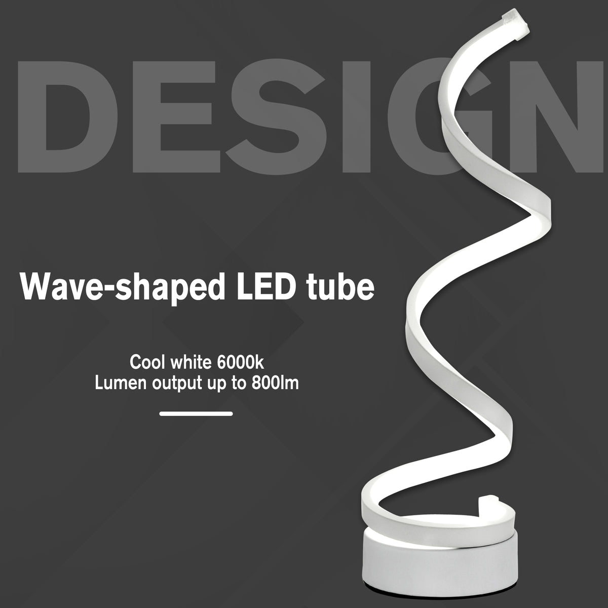 Bring a unique feel to home light with this modern table lamp from HOMCOM. The central LED light is shaped into a cool spiral designand emit a 800lm so your area is effectively lit up. Cool white in colour, the 6000k emits a daylight-style glow without damaged the eyes. Frame is made from firm aluminium and is finished with a large base to keep it balanced.