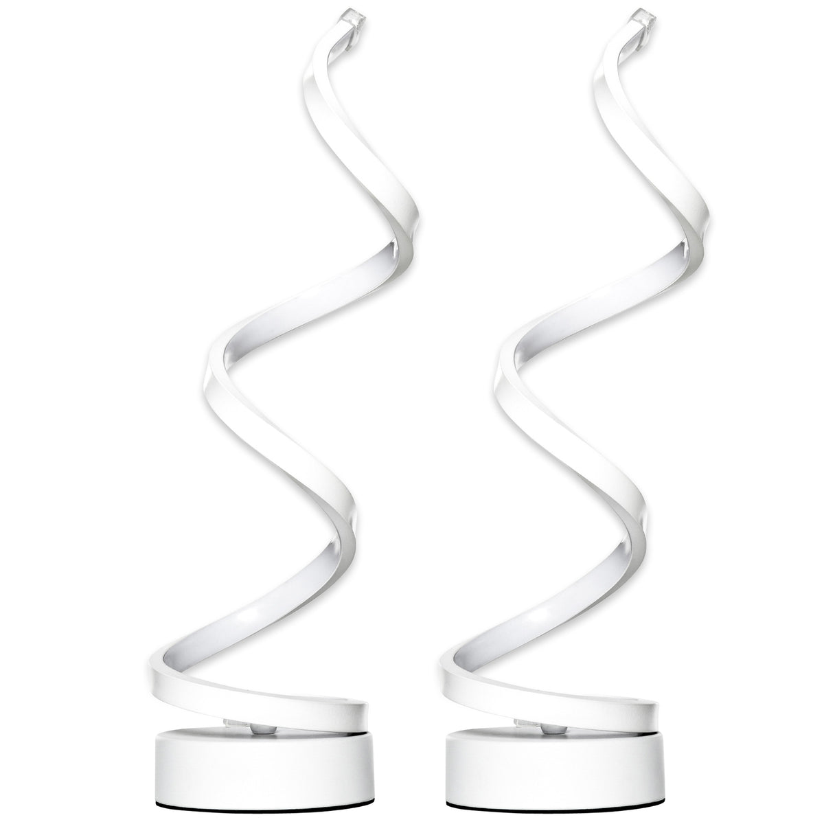 HOMCOM Set of 2 Modern Wave-Shaped LED Table Lamp with Round Metal Base for Living Room, Bedroom, White - White
