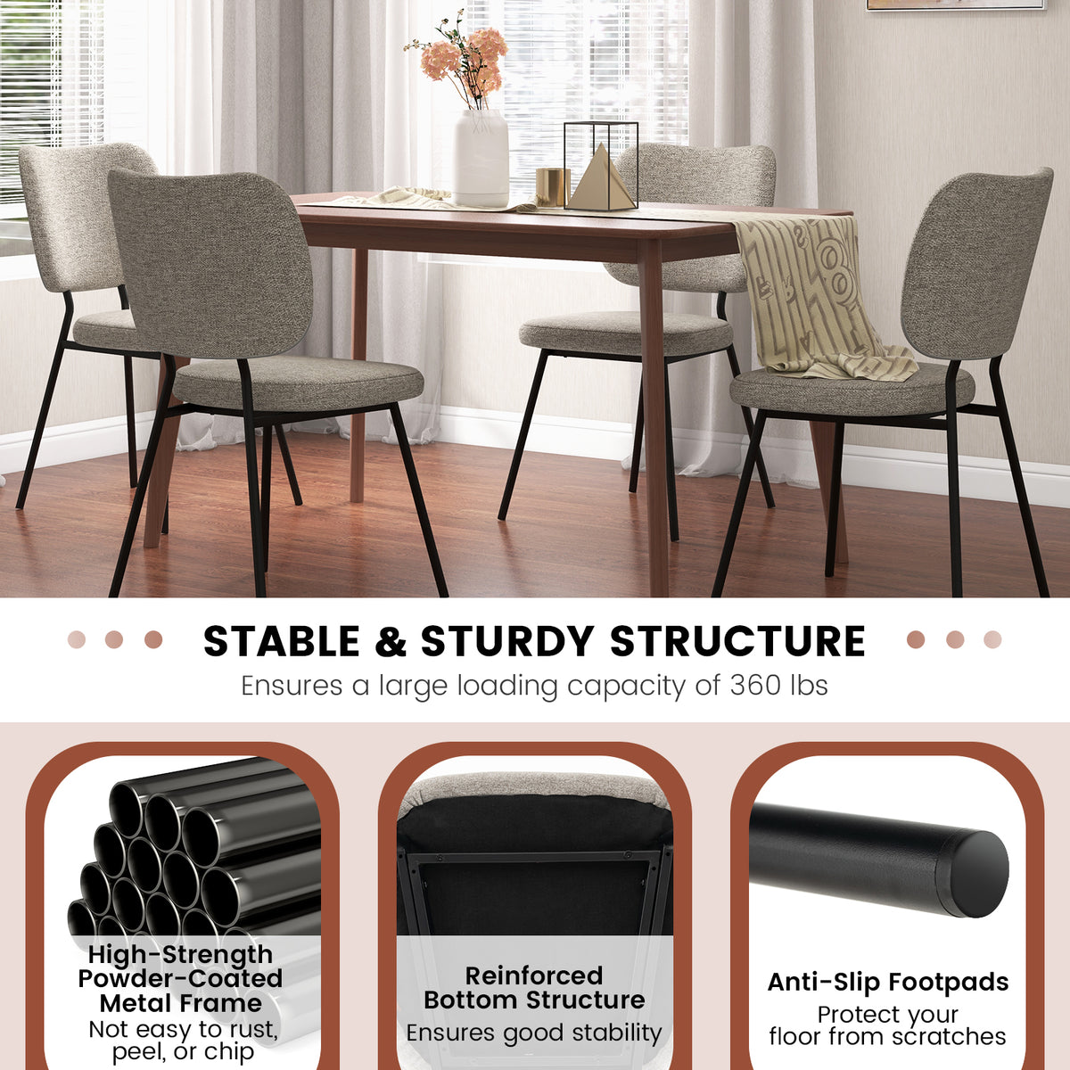 Modern Fabric Dining Chair Set of 2 with Linen Fabric-Grey