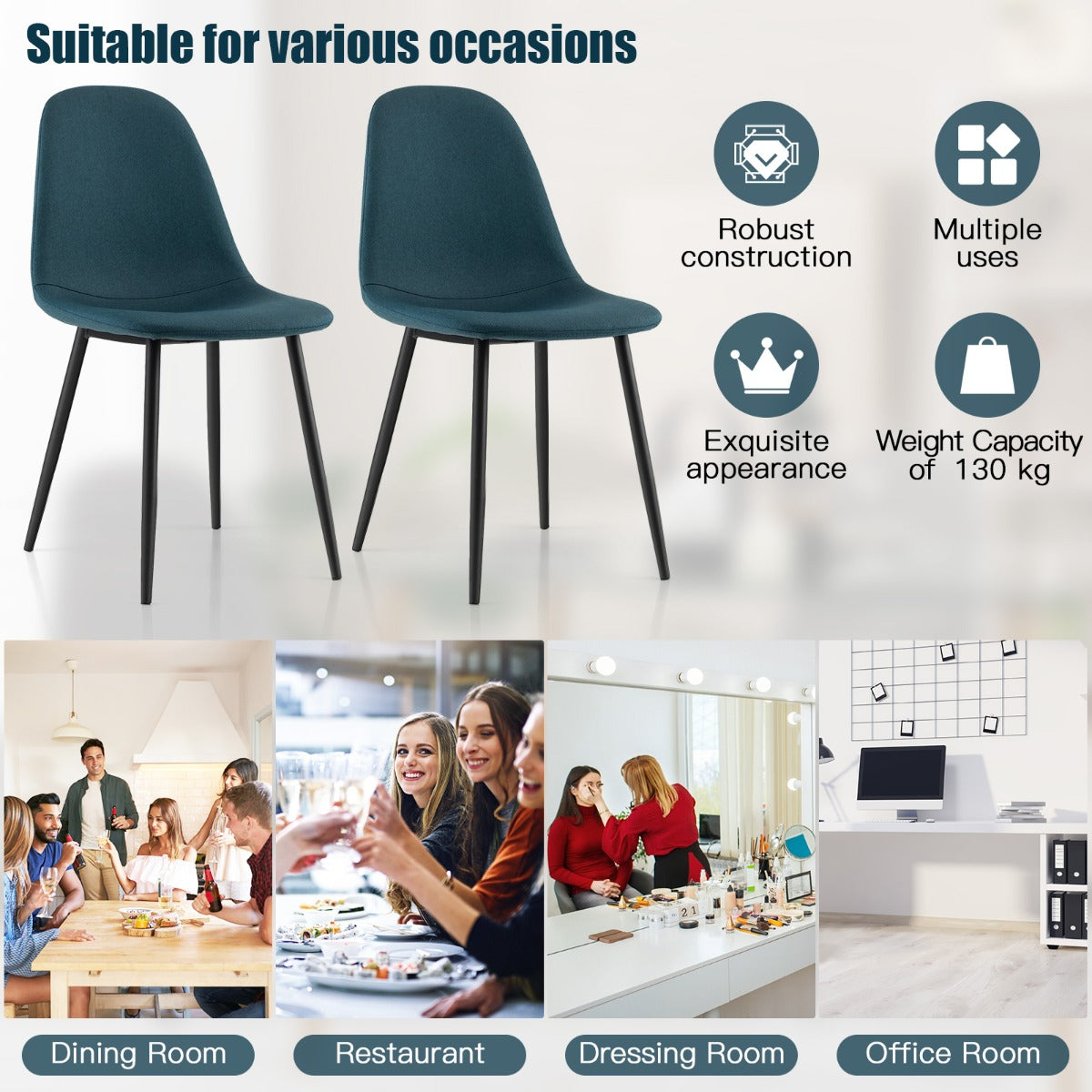 The high rebound foam upholstered seat gives the user the ultimate comfortable sitting experience, while the linen surface is very wear-resistant and suitable for long-time use. What's more, the ergonomic backrest fits the curve of your body, so you won't feel fatigue even after sitting for a long time. Supported by a high-quality plywood frame, the dining chair is not easy to shake or sway. And the sturdy metal legs provide a load-bearing capacity of up to 130kg. The simple and modern design makes this set of chairs suitable for a variety of decor styles. Whether used in a dining room, kitchen, dining room or elsewhere, it will be an ideal choice. If you are looking for dining chairs like this, do not hesitate to place an order! Modern Look and Stylish Design: This two-piece dining chair set features simple lines and a modern design that showcases your unique lifestyle. The gray/blue linen surface and sophisticated chair legs bring stylishness and glamour to your home. It will undoubtedly be the perfect addition to your home or store. Soft Feel and Ergonomic Chair: The backrest of this dining chair is designed according to ergonomic standards and body features. This allows all users to achieve maximum relaxation and comfort. The cushion is filled with soft foam that can better adapt to your body curve and give enough support. Durable Material and Strong Structure: The linen chair surface is very wear-resistant and suitable for long time use. In addition, the high-quality metal with exquisite craftsmanship gives the dining chair a stable frame. The metal chair legs are powder-coated, which not only resists rusting but also provides a bearing weight of up to 130kg. Suitable for Various Scenarios: The size of the chair is 44 x 52 x 87cm. This is the perfect size for daily use. In addition, our chair set can fit with most of the decoration styles. You can use it in dining room, guest room, living room, kitchen and other scenes. This provides convenience for your family gatherings. Easy to Install: Detailed instructions will be included in the package to help you complete the assembly quickly. All the parts of the furniture set will be numbered, which will ensure that you will not miss any of the installation steps. The whole installation process will be very fast and won't take much effort.