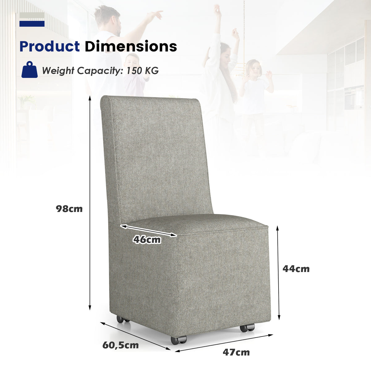 The armless accent chair measures 47 x 60.5 x 98 cm (L x W x H) and is designed to provide the ultimate relaxation in your space. It comes with a breathable linen fabric covering and high-density sponge filling, offering exceptional comfort and support. Besides, the ergonomic design ensures that it conforms to the natural curvature of your body, providing optimal comfort and reducing strain. But that's not all, this chair is equipped with resistance casters that keep it securely in place when you sit on it. No more worrying about sliding or rolling away unexpectedly. Whether you need extra seating in your living room, an elegant addition to your bedroom, or a cozy reading nook in your home office, this chair is the perfect choice. Its sleek and modern design effortlessly complements any space, enhancing its overall aesthetic. Ultimate Comfort: The upholstered accent chair is covered by breathable linen fabric, which is anti-wrinkle, providing a comfy skin touch. Moreover, it is filled with high-density sponges, which is characterized by high resilience, modern softness and hardness, offering a plush seating experience. Easy Mobility: The moveable armless accent chair is equipped with 4 resistance casters that can swivel 360°, allowing you to move or turn around freely. Moreover, the wheels would stop moving when you sit on it, ensuring good stability. Ergonomic Design: The living room chair features a curved backrest, which can perfectly fit your body curve for better relaxation. It also promotes proper posture, reduces strain on your back, and enhances overall sitting comfort. Versatile Application: The multifunctional single sofa chair is perfect for any space and occasion. Whether you need extra seating in your living room, a stylish addition to your bedroom, or a comfortable chair in your office, this chair fits seamlessly into any environment. Add a touch of elegance and functionality to your space. Easy Maintenance and Assembly: The removable cover is fixed on the chair by hook and loop fasteners, which can be removed for cleaning, and it is machine-washable. Besides, with its clear instructions and simple structure, you can easily set the chair up.
