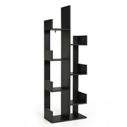 Are you looking for a bookcase to display your items, such as magazines, books, photo albums and other items?Tree-shaped bookrack with 8 storage compartments helps you organize messy books and belonging without taking up too much space. You can fetch your supplies conveniently due to its open shelves design. Also, it has side panels and 2 back panels to prevent book from falling. Sturdy construction ensures excellent load-bearing and stability, making it strong enough to hold various items. With anti-toppling fitting, the bookcase can attach to the wall firmly for super safety. This elegant and functional bookcase is a perfect addition to your living room, bedroom and study room. Spacious but Compact Design: This compact bookshelf comes with 8 storage compartments, which provides plenty of storage space for your necessities. You can arrange your books, magazine albums, clocks and other decorations on this unique tree. And the open shelves design allows you to easily access itemsDurable Material and Stable Structure: Made of strictly selected engineering wood, the wooden bookcase is sturdy, scratch-resistant and wear-resistant for durable and reliable use. Each Tier can bear a maximum weight of 22lbs. More, the non-slip foot pads prevent the floor from being scratched and increase stability. Humanized Details and Security Guarantee: The side panels and 2 back panels are specially designed to keep books in place and avoid falling. Besides, the anti-toppling fitting secure to the wall with reinforced screws to protect the safety of your family members. Thanks to its lightweight frame, you can move it to any room easily.Perfect for Your Space: With an attractive vintage appearance, this large bookcase goes perfectly with your decor and sublimates your space. Measuring 20''X 10'' X 57'', it is suitable for a variety of limited places, including living room, study room, bedroom or other places.Fast Assembly and Easy Cleaning: The package includes detailed instructions and detailed instructions, so you can install it effortlessly by following the instructions. More, the smooth and water-resistant surface allows you to easily wipe off the dust with a damp cloth.