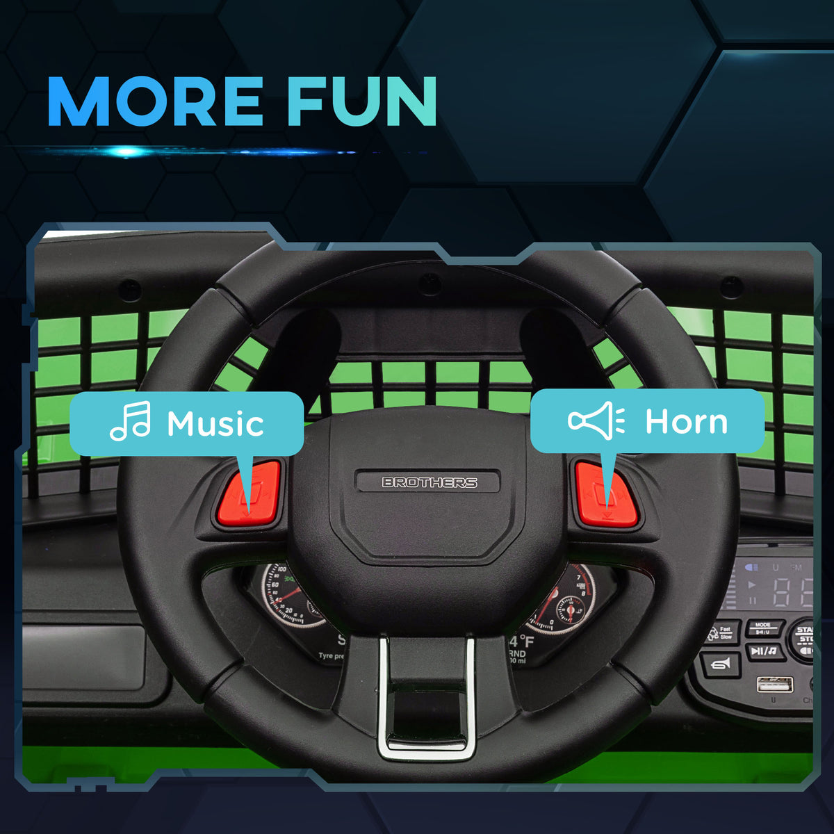 AIYAPLAY 12V Battery Powered Kids Ride-On Car, Electric Truck w/ Spring Suspension, Remote, Music, Horn, Lights, Green - Green