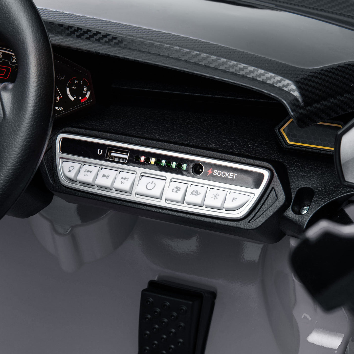 AIYAPLAY 12V Lamborghini Autentica Licensed Kids Electric Car with Remote Control, 4 Suspension Wheels, Soft Start, Grey - Grey
