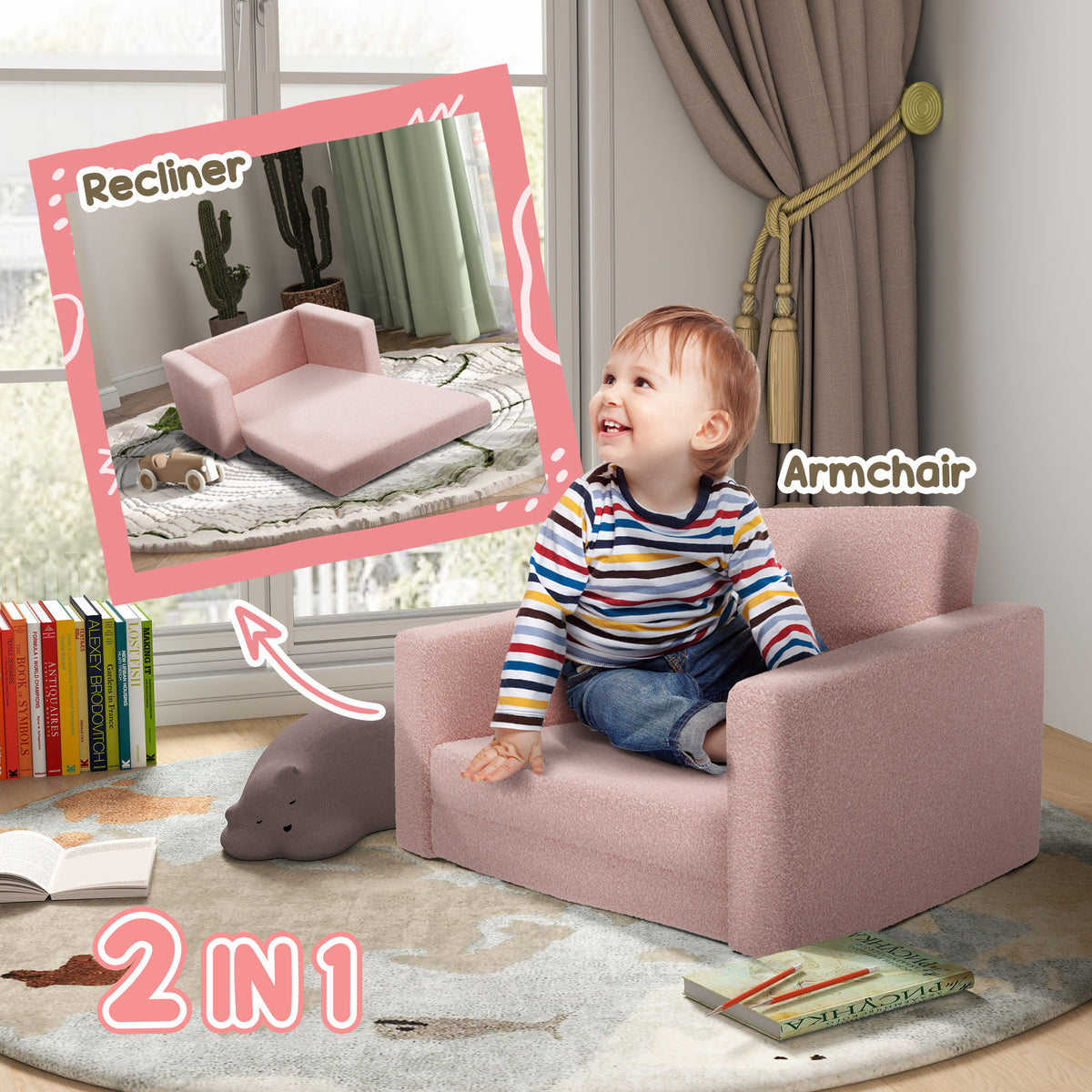 AIYAPLAY 2 in 1 Kids Armchair, Foldable Recliner for 1.5-3 Years Old, Pink