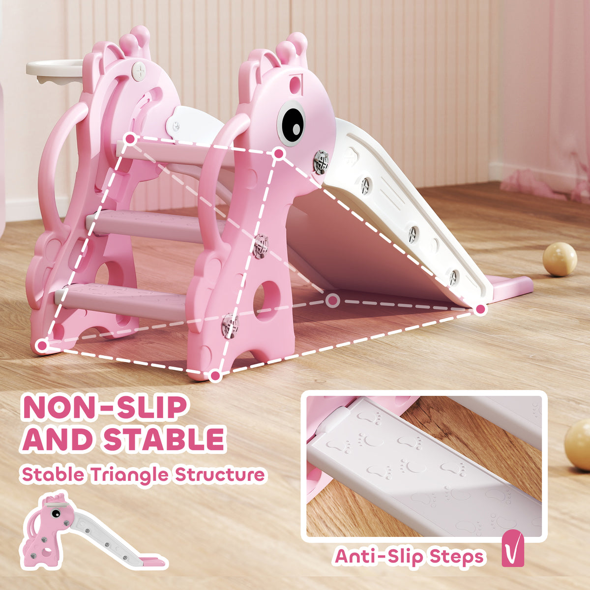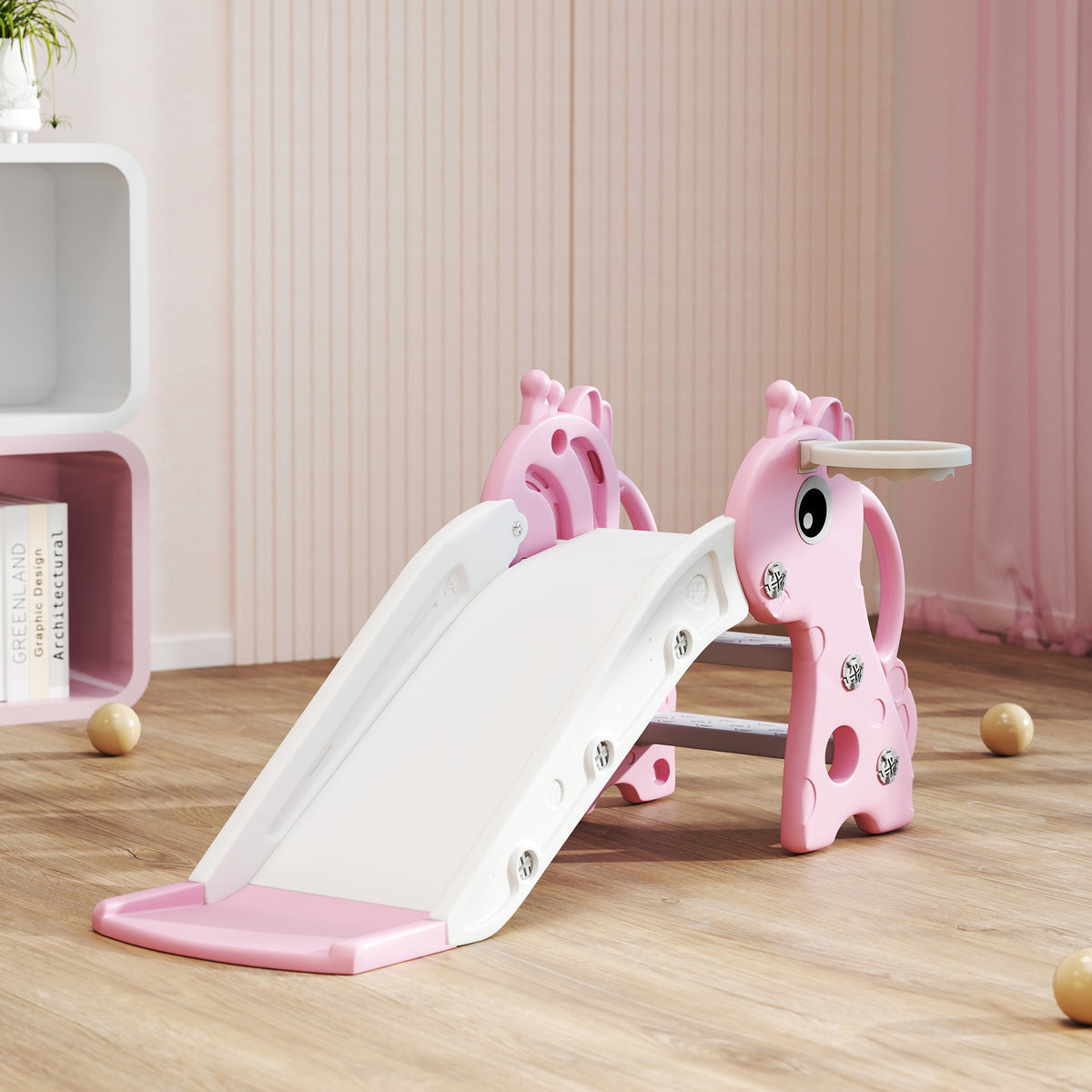 AIYAPLAY 3 in 1 Kids Slide with Climber, Basketball Hoop and Ball, Giraffe Shape Climber Slide for Indoor Kids Age 1-3, Pink - Pink