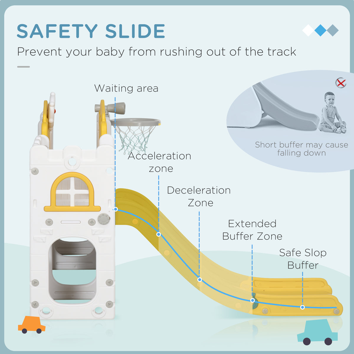 Turn your home into a fun-filled playground with the seven-in-one AIYAPLAY toddler slide. It features a thrilling slide, basketball hoop, telescope, tunnel, steering wheel and climber, brings endless fun and excitement! Safety is a top priority, with an acceleration zone, deceleration area and buffer zone for smooth and safe sliding. Suitable for ages 1-3 years, it encourages active play and sparks their imagination, making it a fantastic indoor play centre.