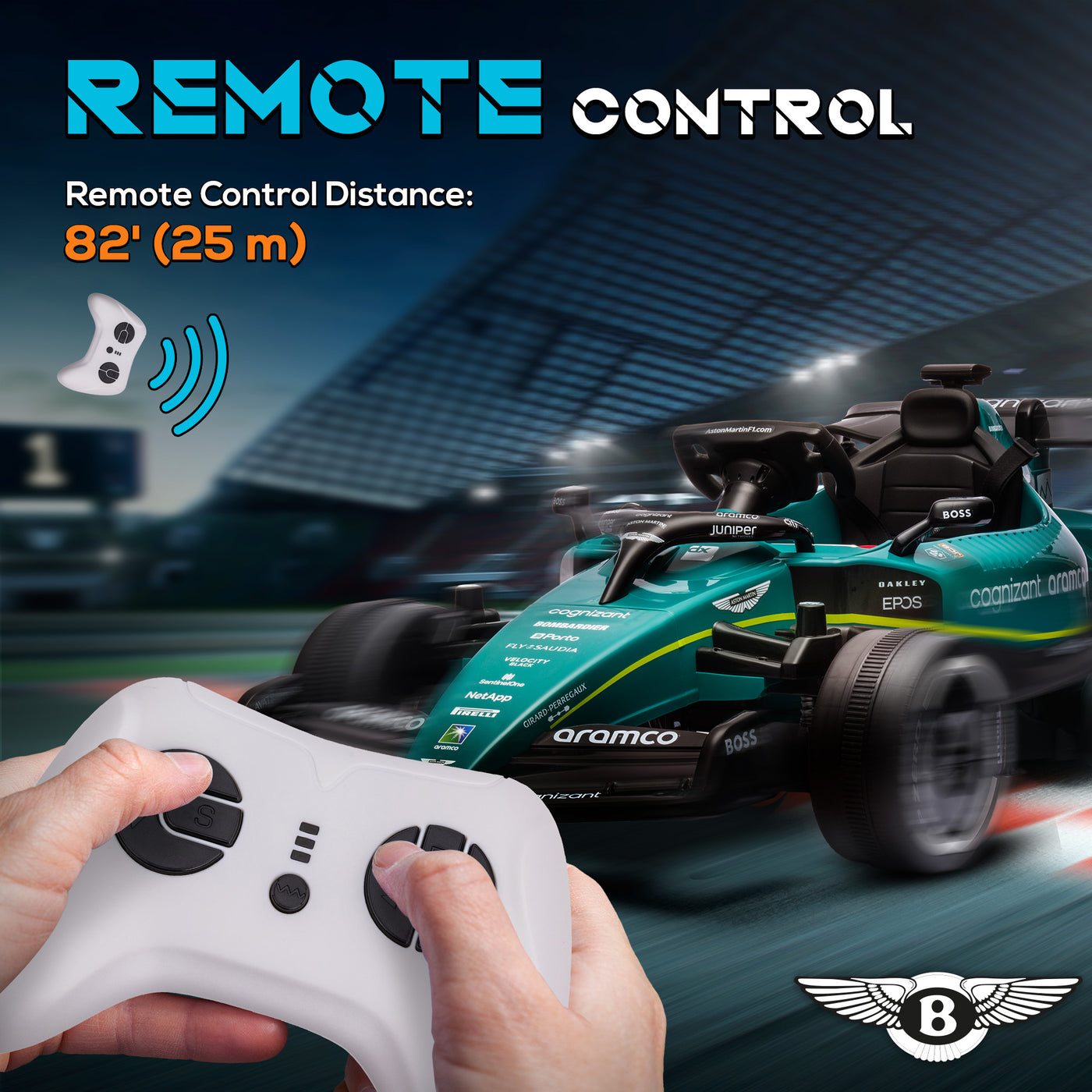 AIYAPLAY Aston Martin Licensed 12V Kids Ride on Racing Kart w/ Bluetooth, 4 Suspension Wheels, Music Lights Horn, Green - Green