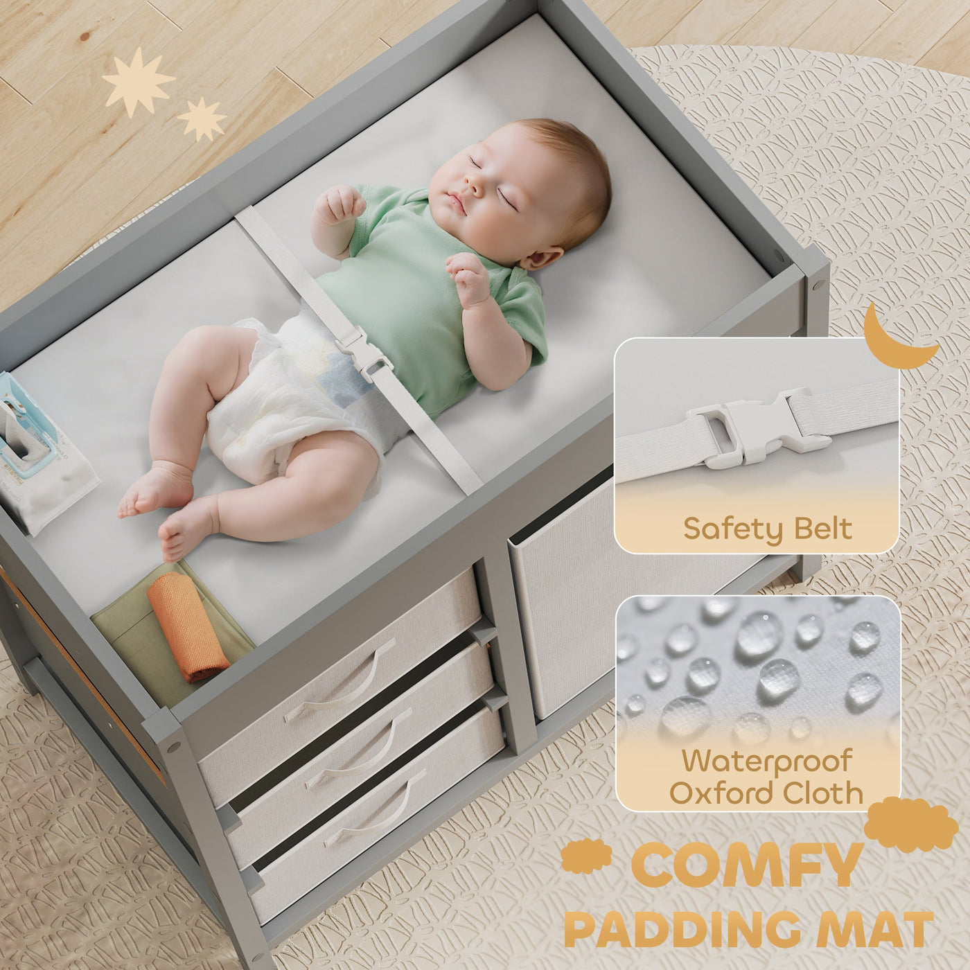 AIYAPLAY Baby Changing Unit with 4 Storage Drawers, Mat for Bedroom Nursery, 84 x 84.5 cm, Grey - Grey