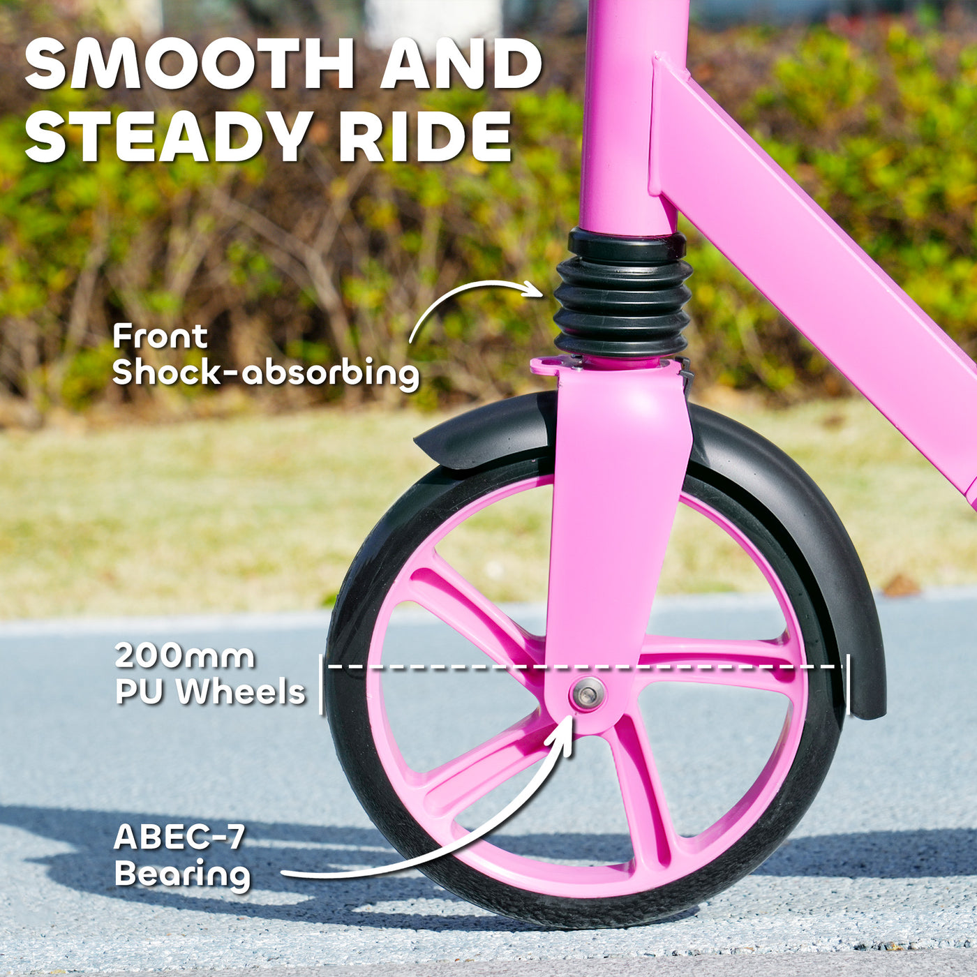 AIYAPLAY Foldable Kids Scooter with Adjustable Handlebar, 200mm Big Wheel, Rear Fender Brake, for Ages 6-12 Years, Pink - Pink