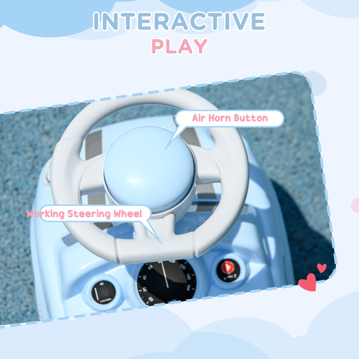 AIYAPLAY Foot To Floor Ride On Car Sliding Car w/ Air Horn, Anti-Over-Backwards, 18 to 36 Months - Light Blue - Blue