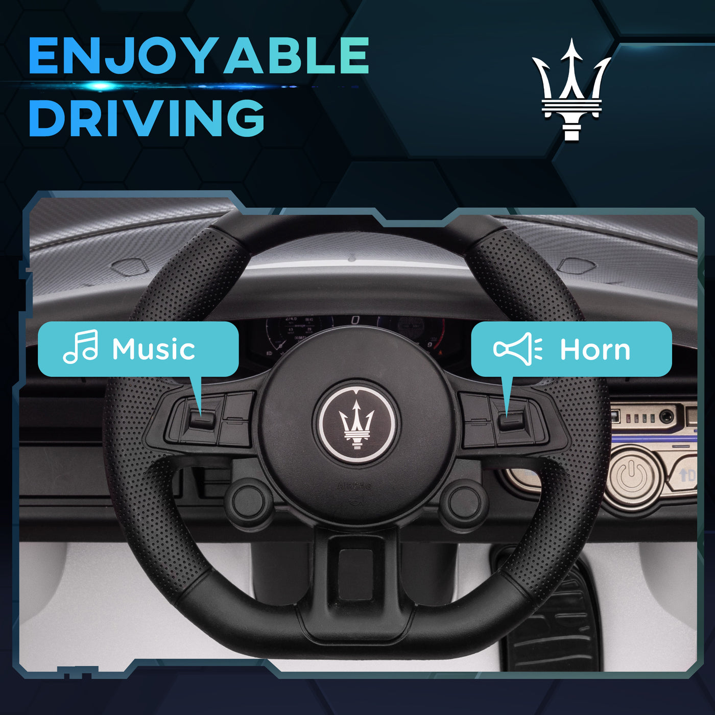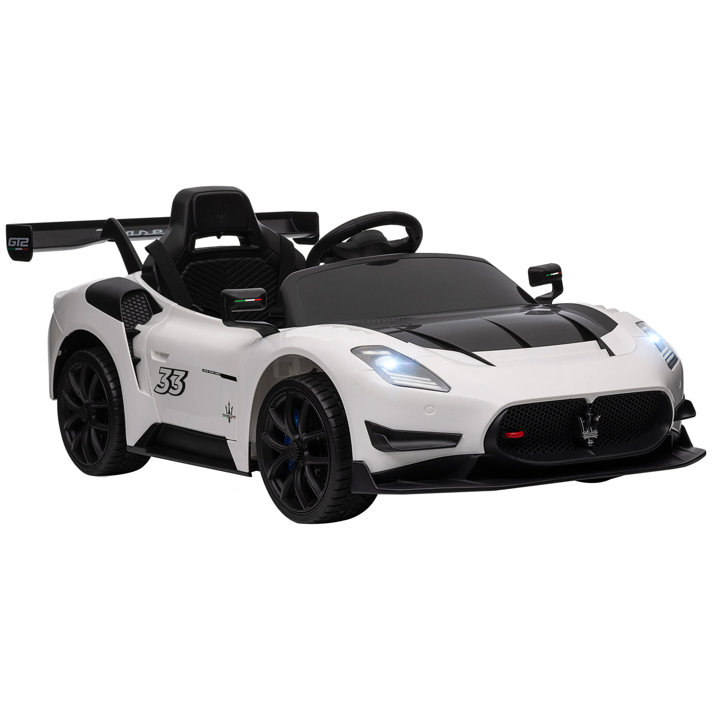 AIYAPLAY Maserati GT2 Licensed 12V Kids Electric Ride on Car with 4 Suspension Wheels, Remote Control, Music, Horn, Lights, White - White