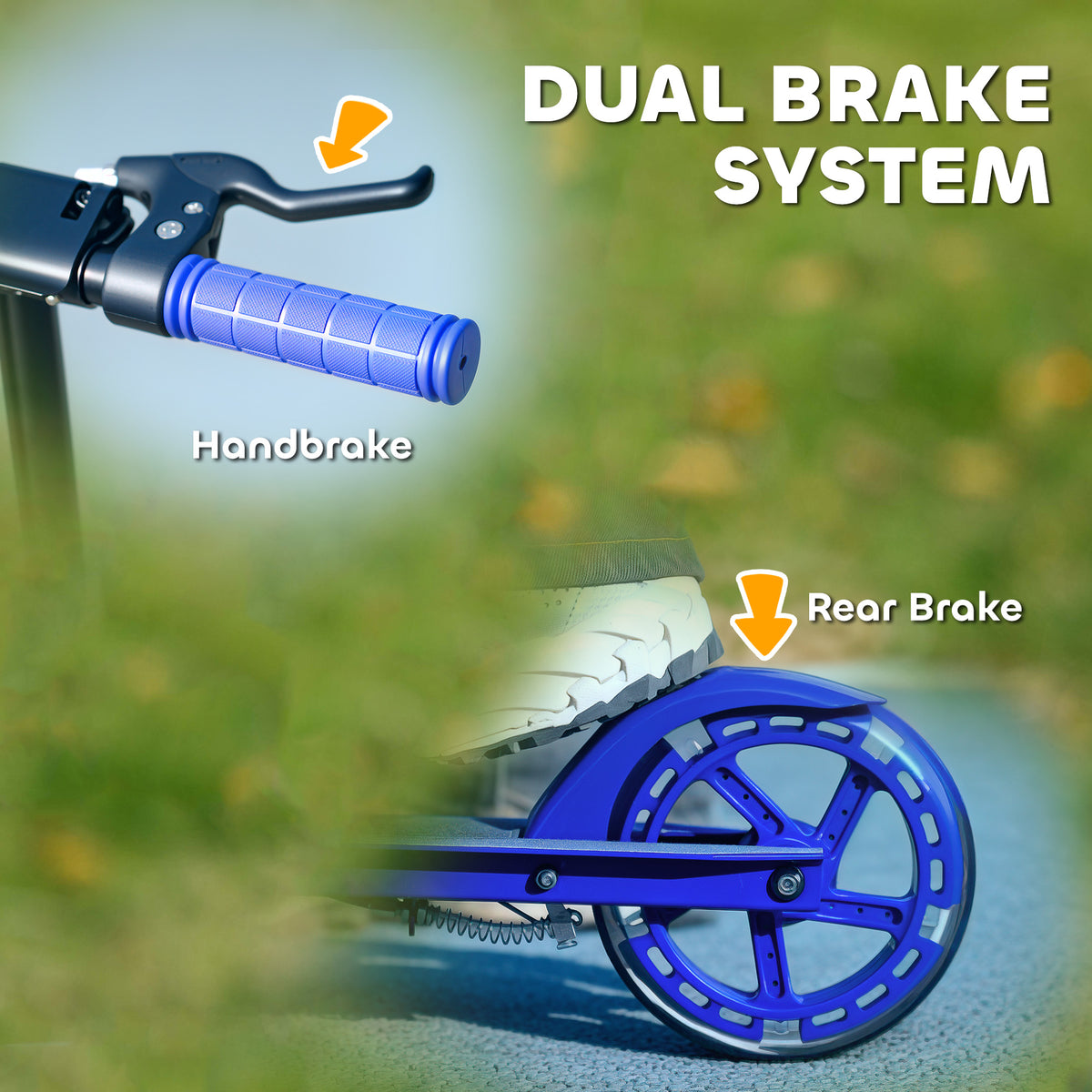 AIYAPLAY Scooter for Kids Aged 3-8 Years, with Adjustable Handle, Two Light Up Wheels, Handbrake, Rear Brake, Blue - Blue