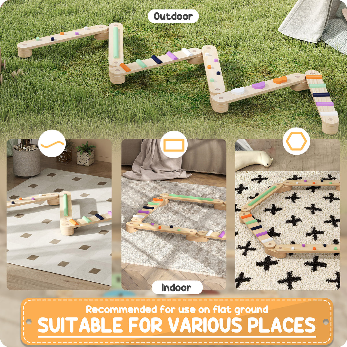 Turn any space into an active playground with AIYAPLAY's balance beam for kids! Cleverly designed, it helps develop balance and coordination and can be set up in various shapes to keep playtime fun, different and exciting. Featuring a two-sided design with colourful, tactile modules, it's a wonderful sensory path for little adventurers ages 3-8 years, suitable for both indoor and outdoor use.