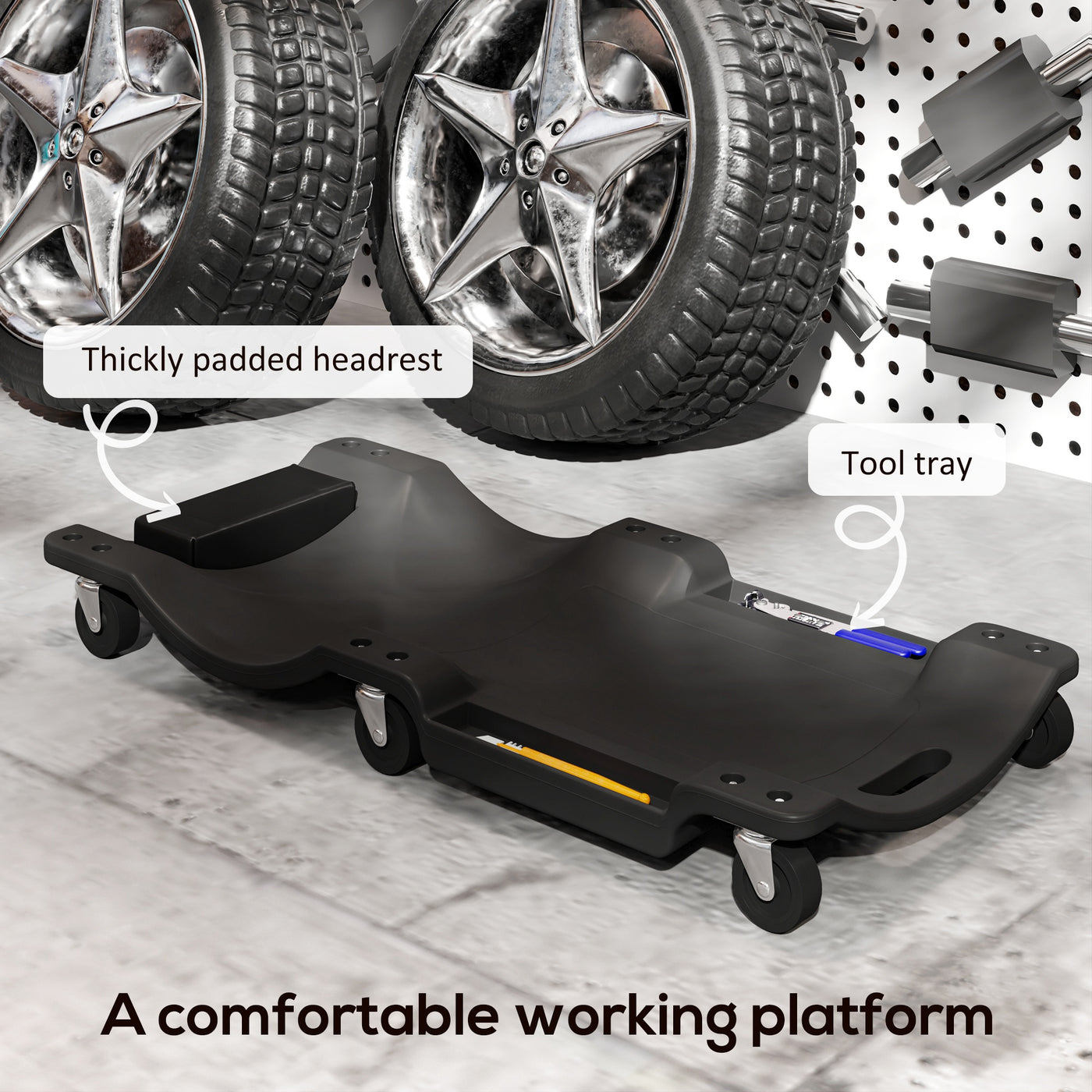 DURHAND Mechanic Vehicle Creeper, Under-Car Rolling Crawler Board, with Headrest, Wheels, Black - Black