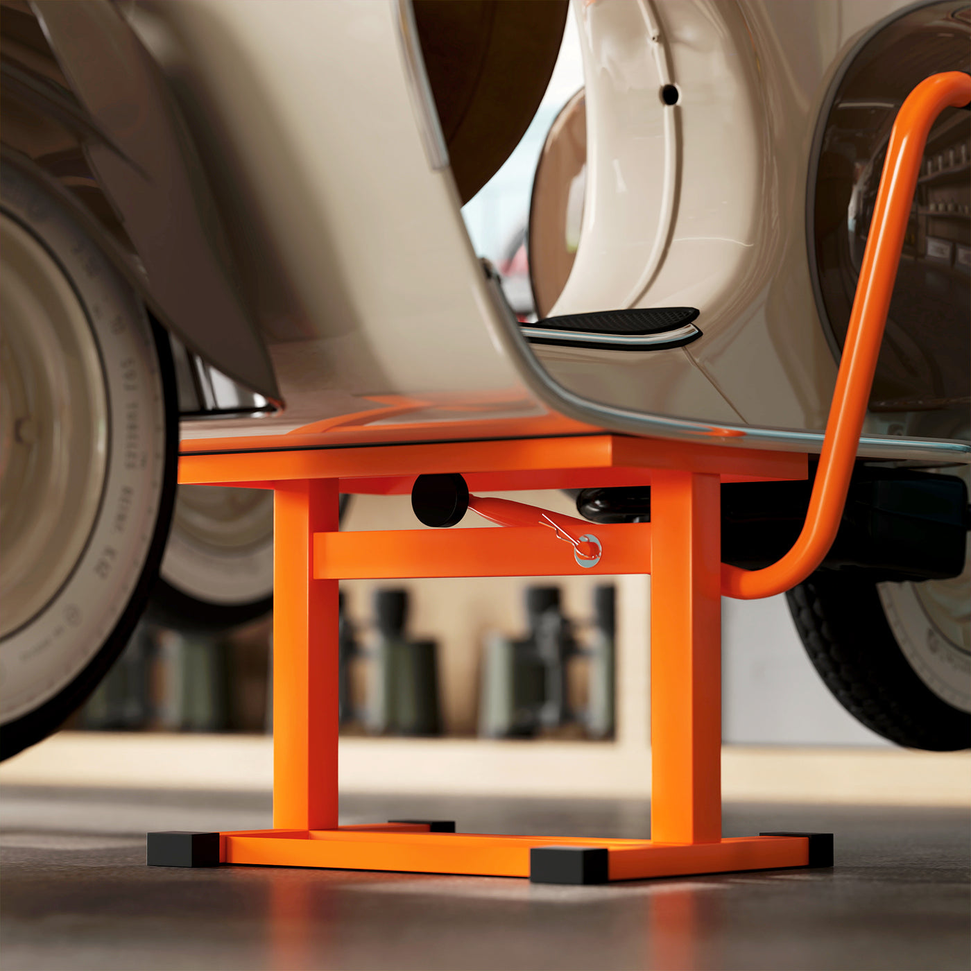 Repair your motorbike safely and easily every time with this motorcycle stand from DURHAND. Made from steel, the frame is tough and robust, with its square shape making it a universal piece for all motorcycles and can handle up to 150 kg. The lift handle cranks up the platform between 39-46cm to allow you to get underneath safely and easily. It's finished with a rubber top for friction against your bike to prevent it moving around. Great for keeping your beloved bike performing at its great.