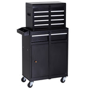 DURHAND Tool Chest 2 in 1 Metal Tool Cabinet Storage Box with 5 Drawers Pegboard Wheels 60x28x104.5cm Black - Black