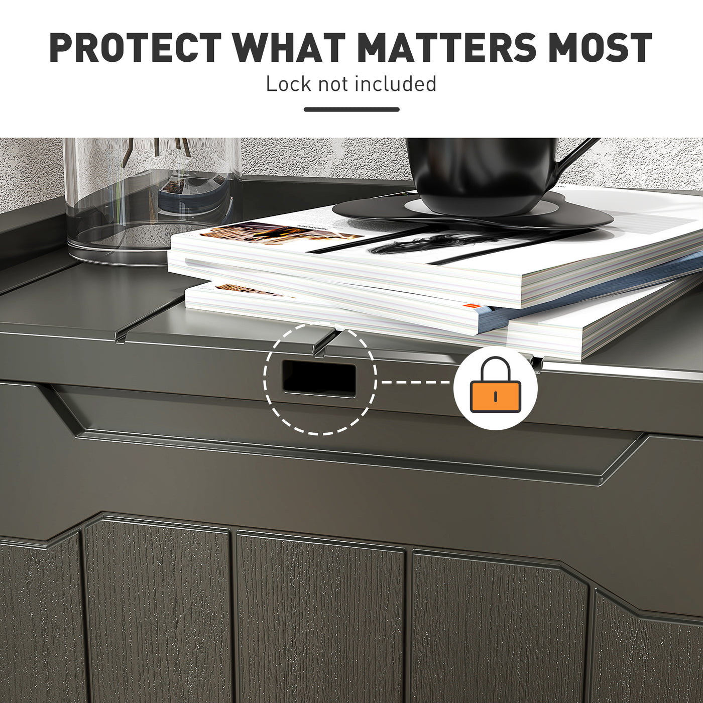 HOMCOM 107 L Plastic Storage Chest with Lid - Charcoal Grey - Charcoal grey