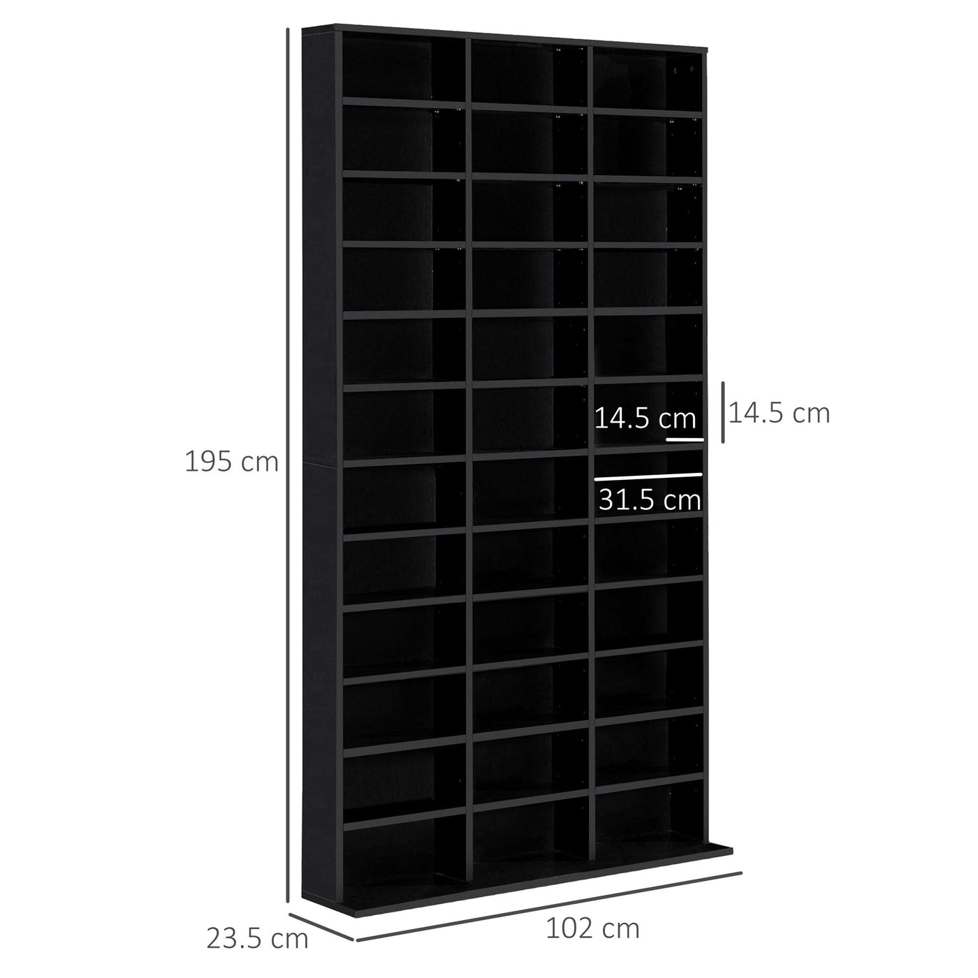 HOMCOM 1116 CD/ 528 DVD Storage Unit, Media Storage Shelf, Wooden Display Unit with Adjustable Shelves, 102 x 195 cm, Black - Black