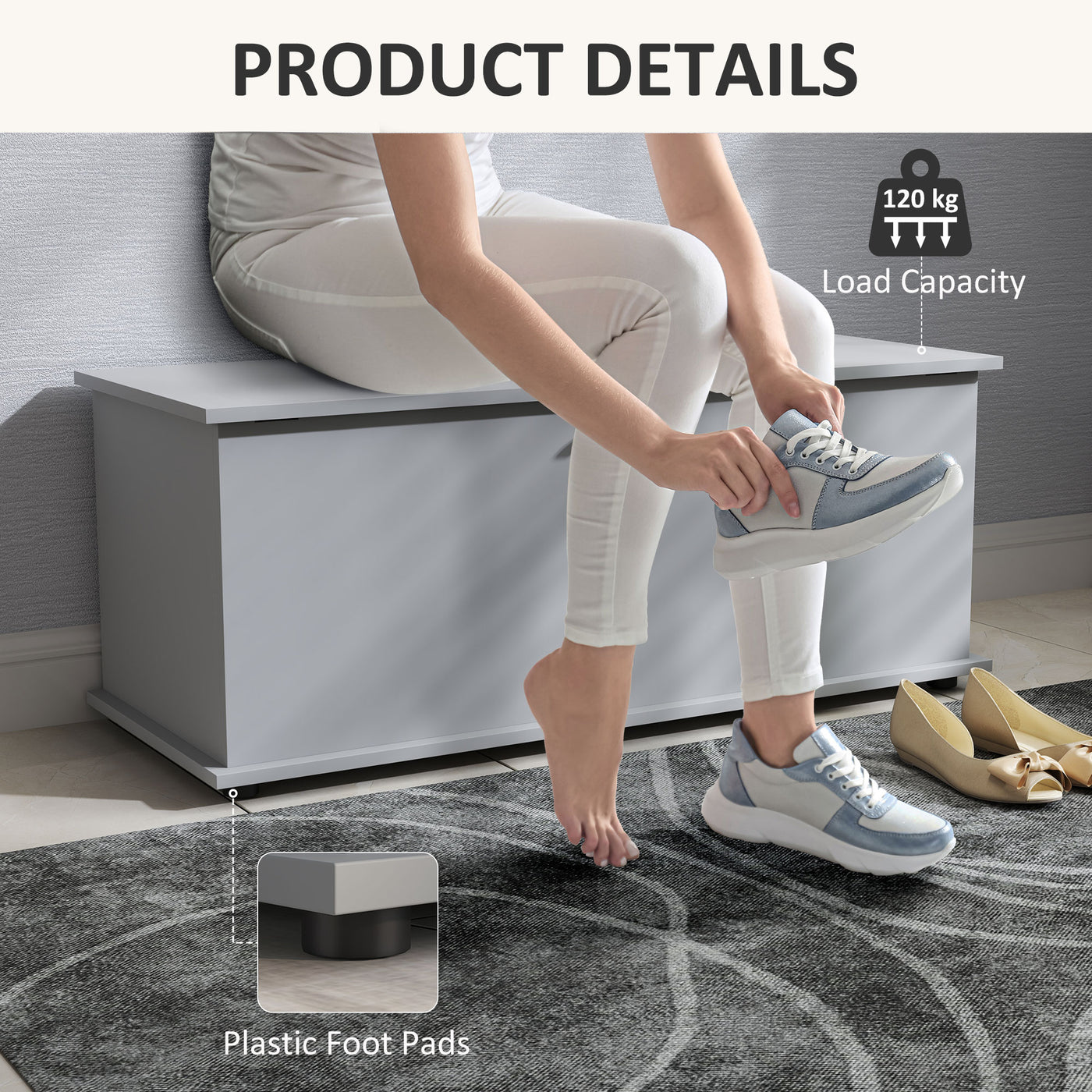HOMCOM 113L Storage Chest, Storage Box with Flip-Top Lid and 2 Safety Hinges, Storage Trunk for Living Room, Entryway, 100 x 40 x 40 cm, Grey - Grey