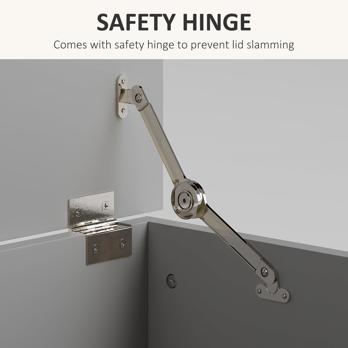 HOMCOM offers the optimal storage solution to all your organising needs with this simple modern designed storage chest. The robust wooden construction makes the lid and the internal space hold weight up to 120kg and 60kg. Constructed to offer a great decorative and practical addition to any room decor. This storage box can be used as a footstool or bed end bench.